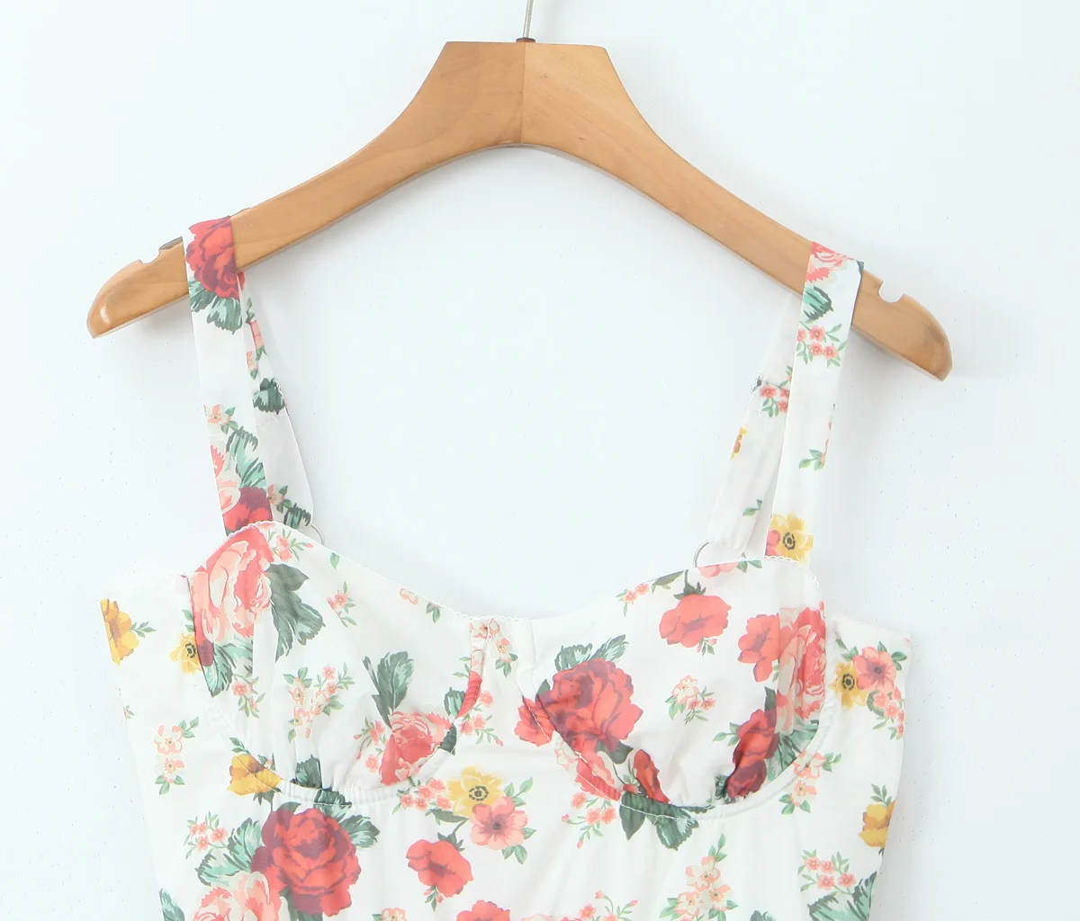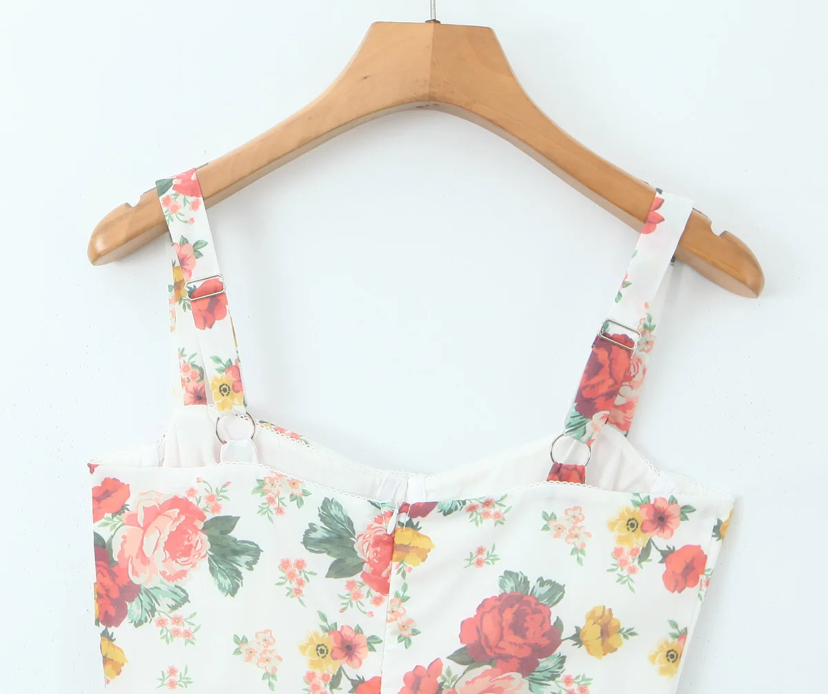 Sexy Elegant Women Lace Trim Floral Print A-line Midi Summer Dress