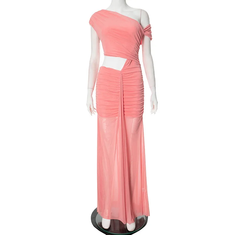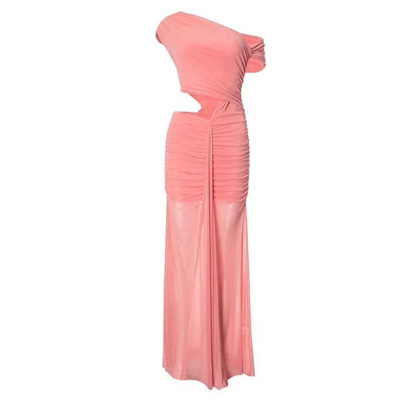 Sexy Sleeveless Hollow Out Pleated Patchwork Maxi Dress For Women High Waist Off-shoulder Slim Club Party Long Dress