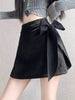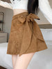 Sexy Slim Faux Suede Skirt Women High Waist Streetwear Vintage Bow Mini Skirts Fall Winter Casual American A Line Skirt New