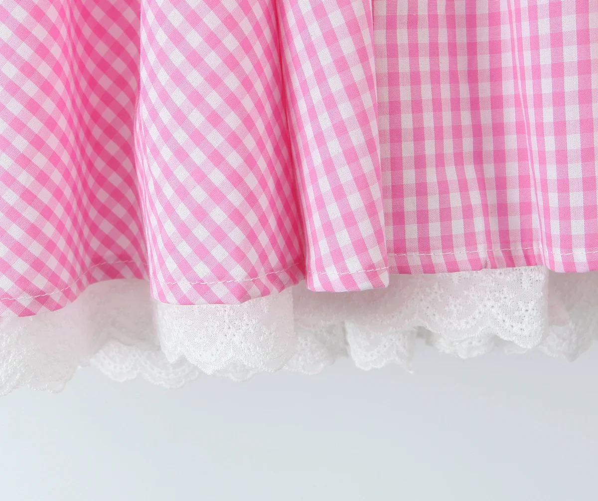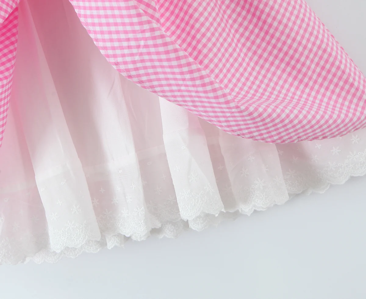 Sexy Spaghetti Straps pink Plaid Mini Dress Women Embroidery Lace Spliced Elegant A-line Summer Dresses Party Robe