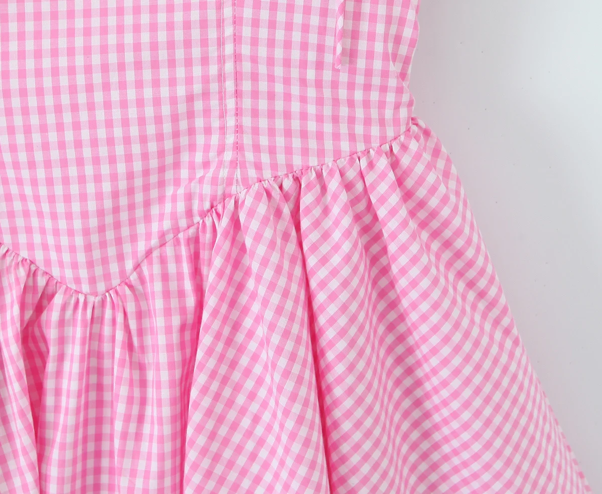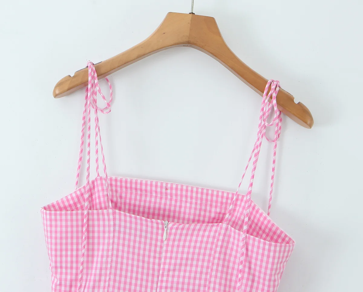 Sexy Spaghetti Straps Pink Plaid Mini Dress