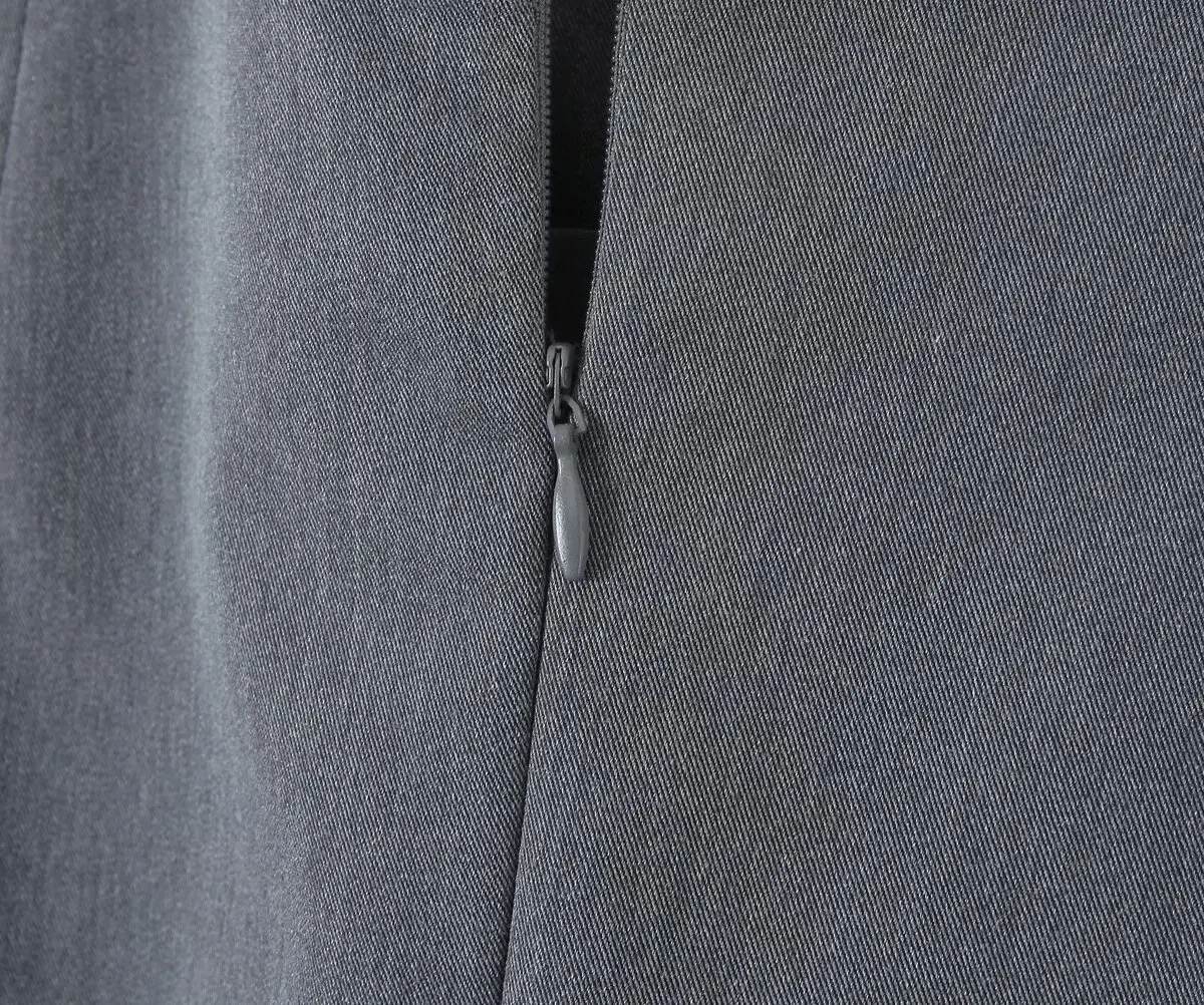 Sexy Women Lace Trim Gray Pencil Skirt Back Slit Low Waist Package Hips Knee
