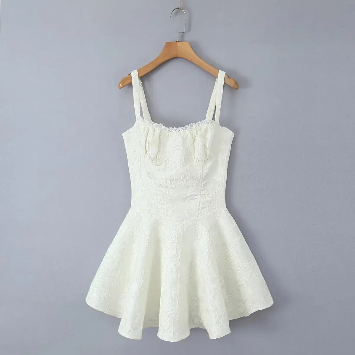 Sexy Women Lace Trim Jacquard Sling Mini Dress