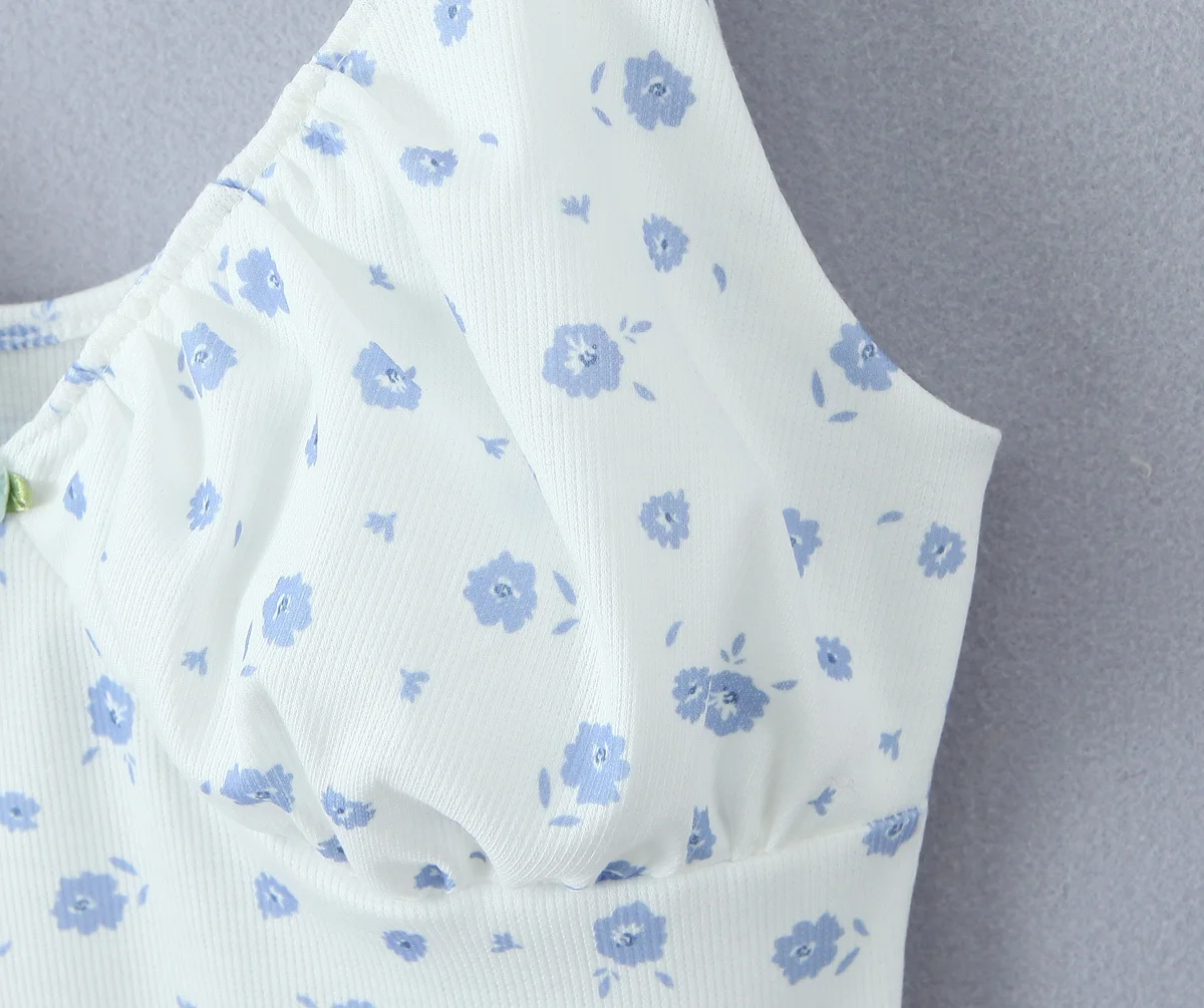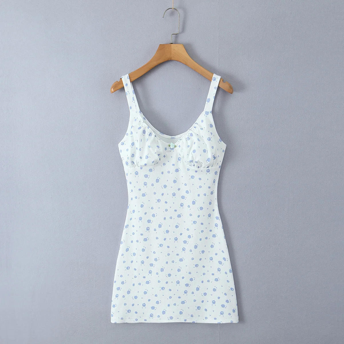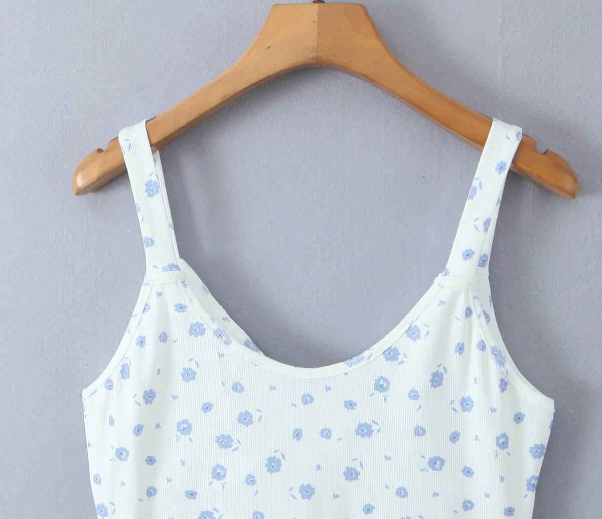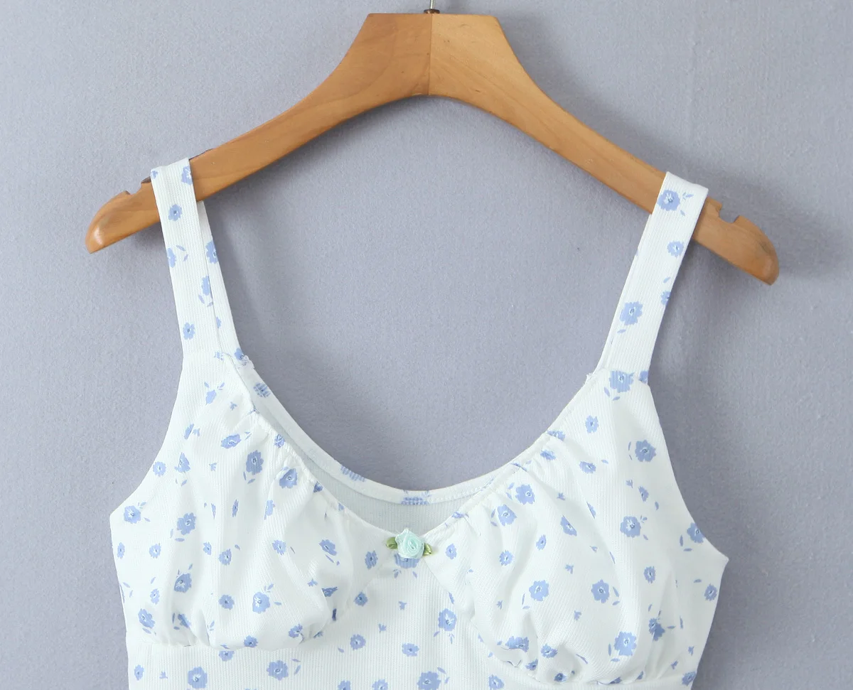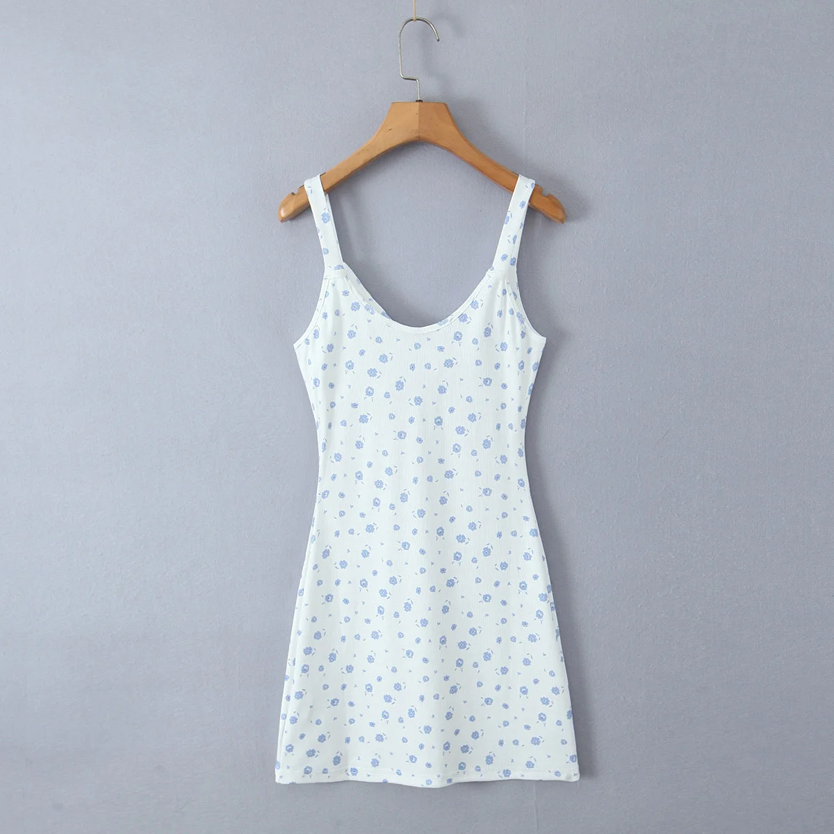 Sexy Women Sweet Floral Print Slim Knit Dresses Sleeveless V Neck Mini Summer Dress Beautiful Girl Holiday Robe