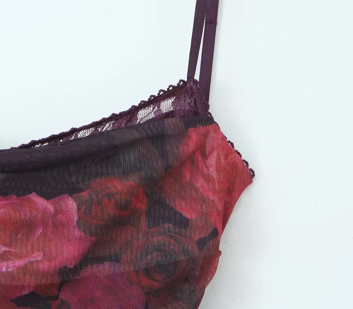 Sexy Women Vintage Floral Print Mesh Sling Long Dress