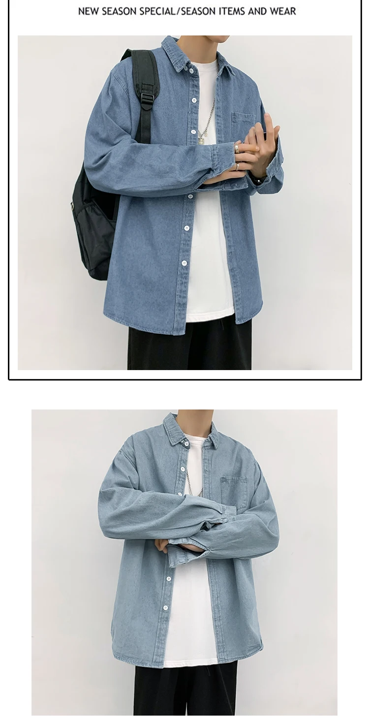 Shirts Men Retro Popular Japanese Fashion Streetwear Cargo All-match Long Sleeve Handsome Ulzzang Teens Students Simply Casual