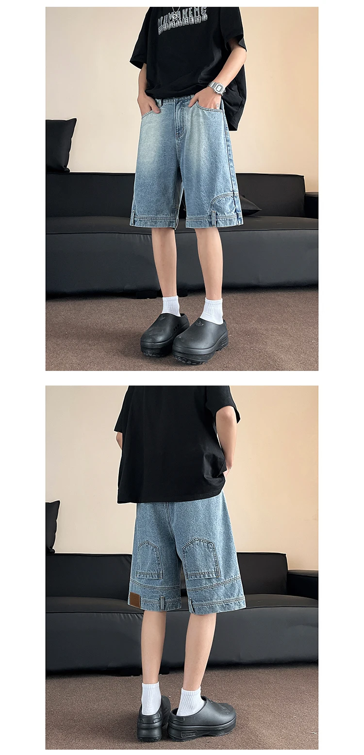 Short Men Blue Washed Denim Shorts Casual Distressed Design Summer Streetwear Fashion Comfort Fit Men Denim Shotrt