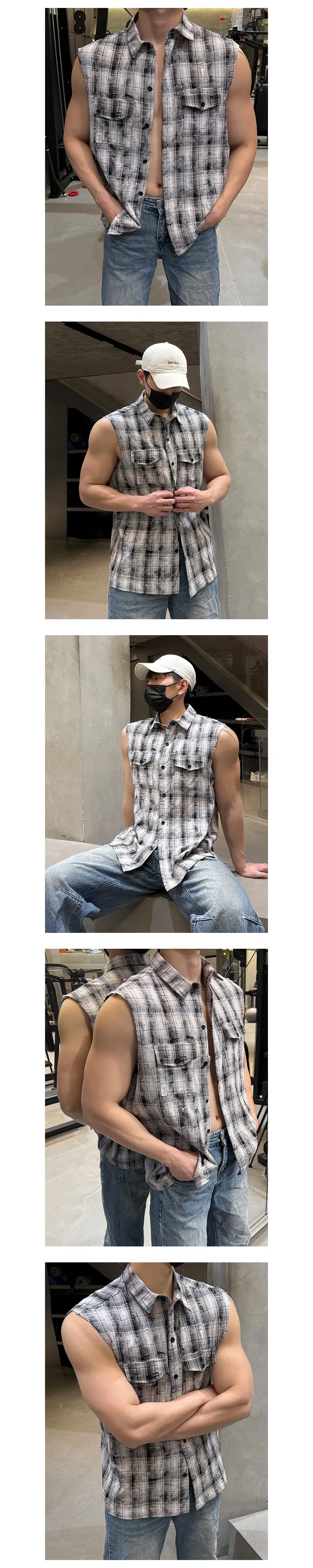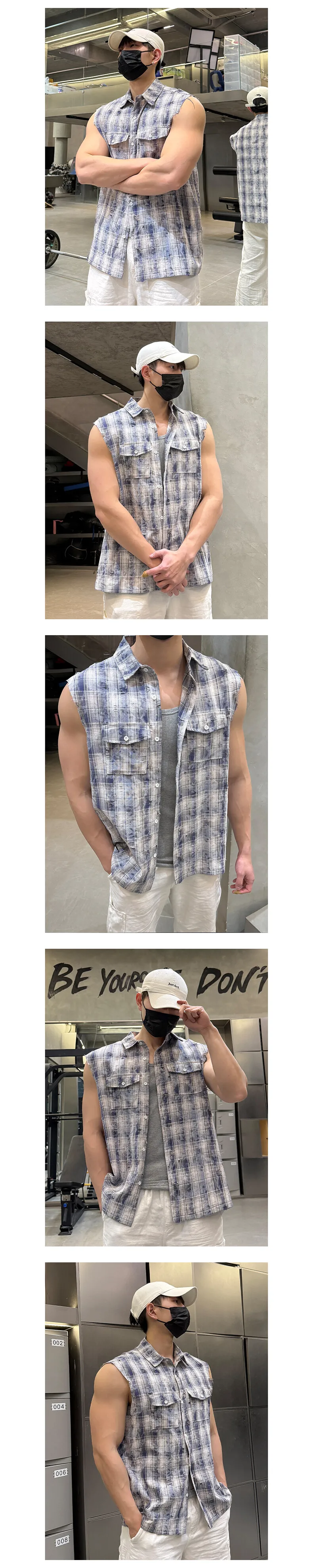 Sleeveless shirt men Trendy Men Plaid Shirt 2025 Summer Fashion Checkered Streetwear Hot Sale Breathable Casual Top Comfortable