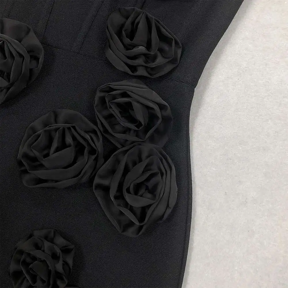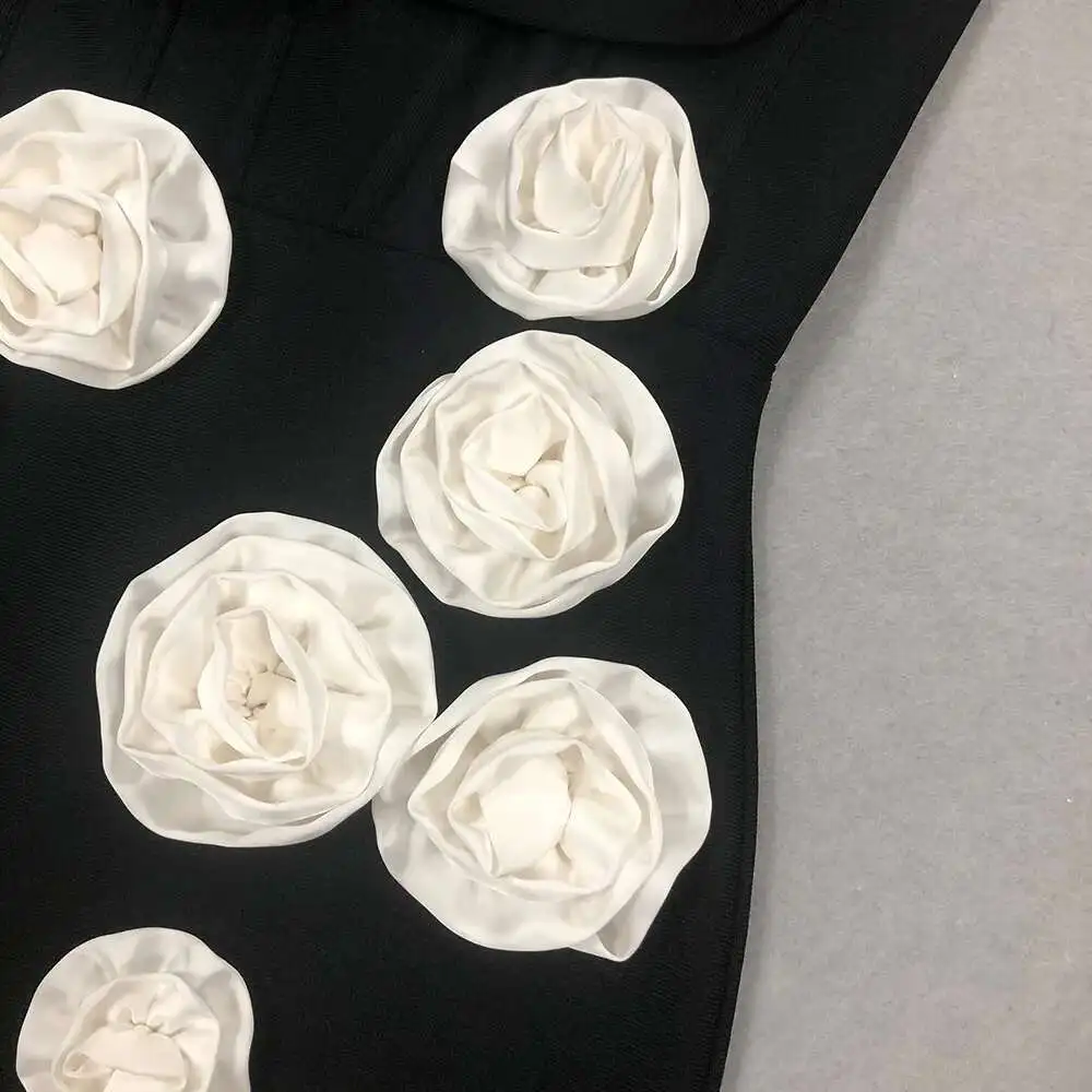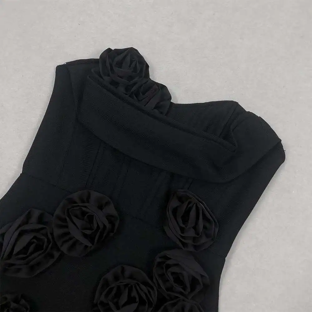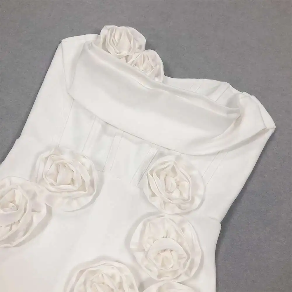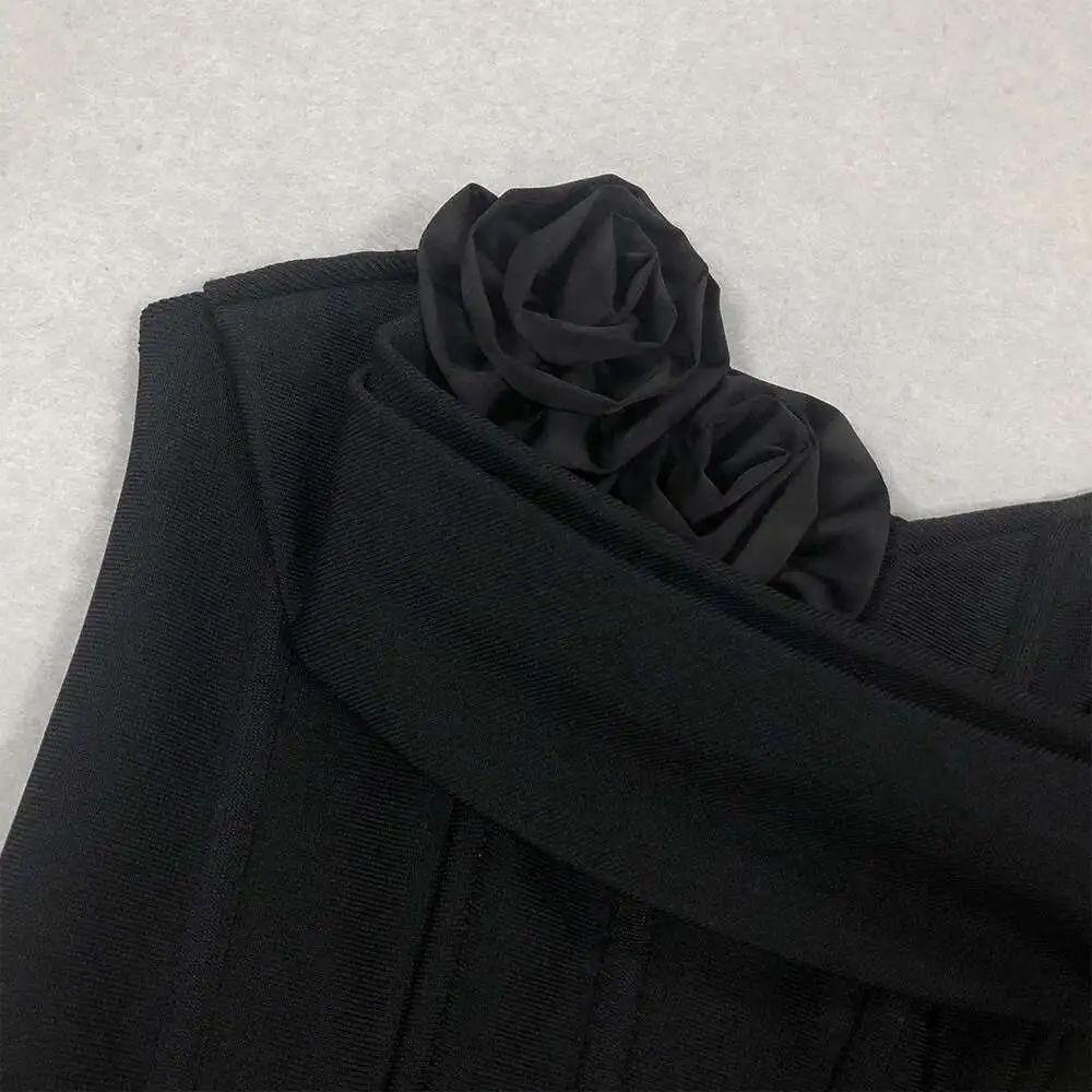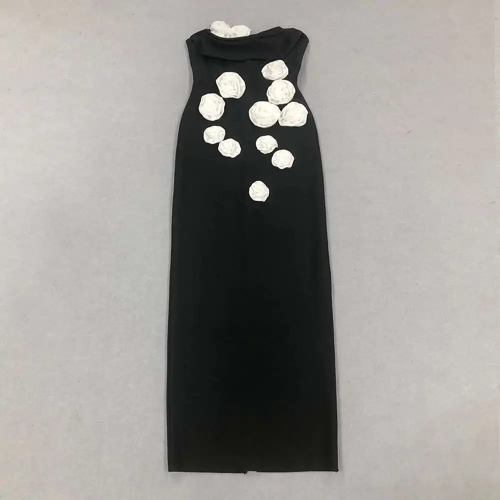 Solid 3D Flowers Spliced Design Dresses Women's Strapless Sleeveless High Waist Slim Elegant Dress Autumn 2025 New