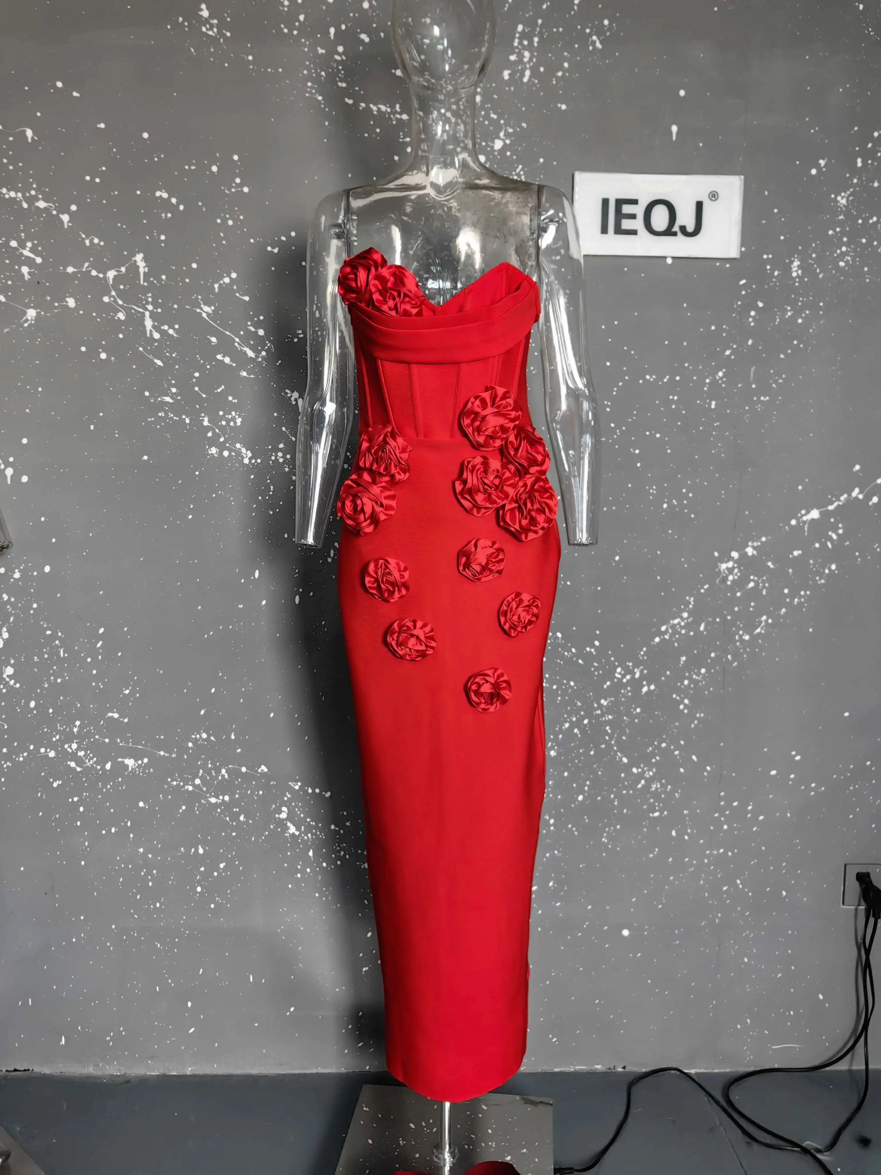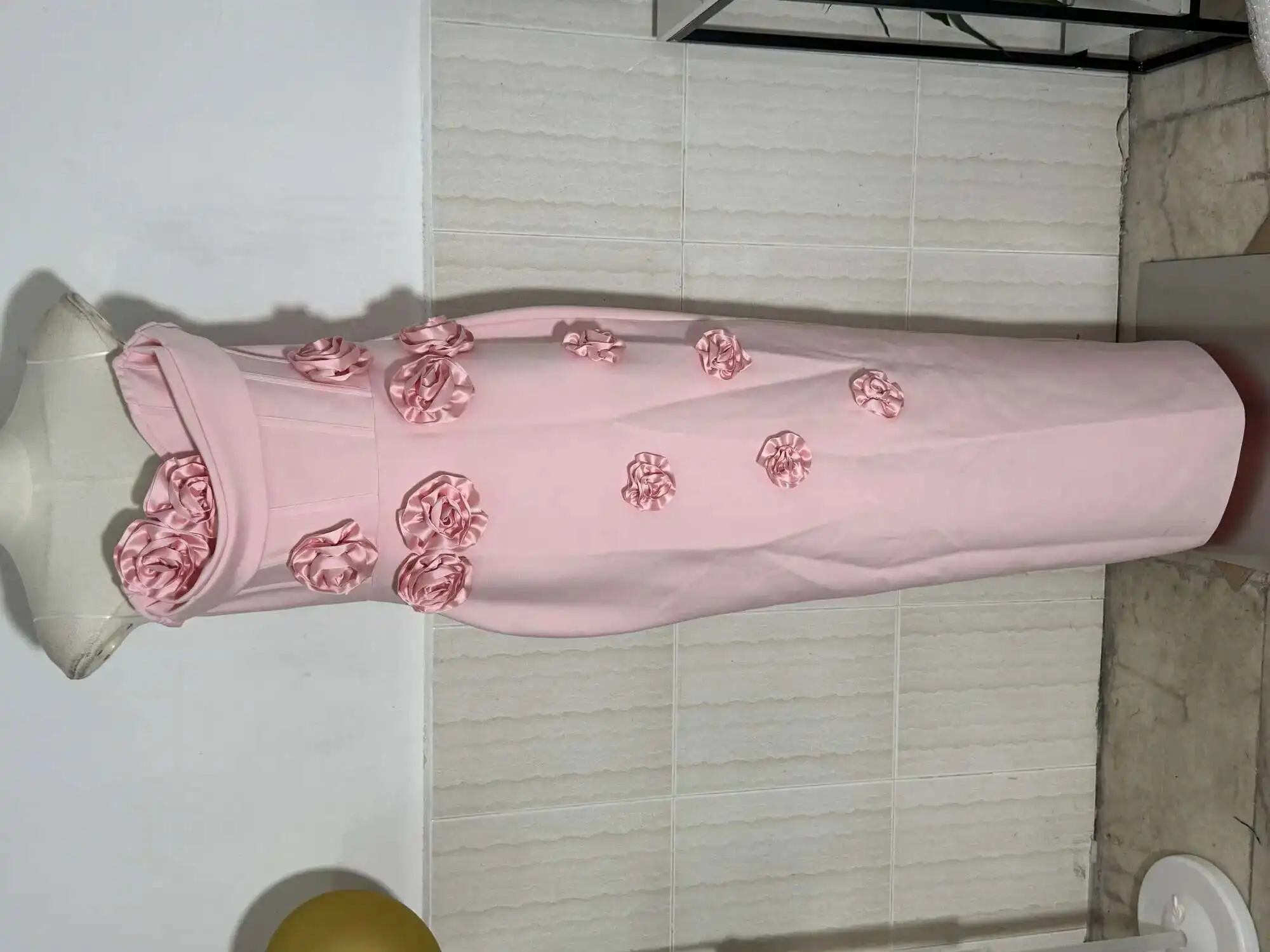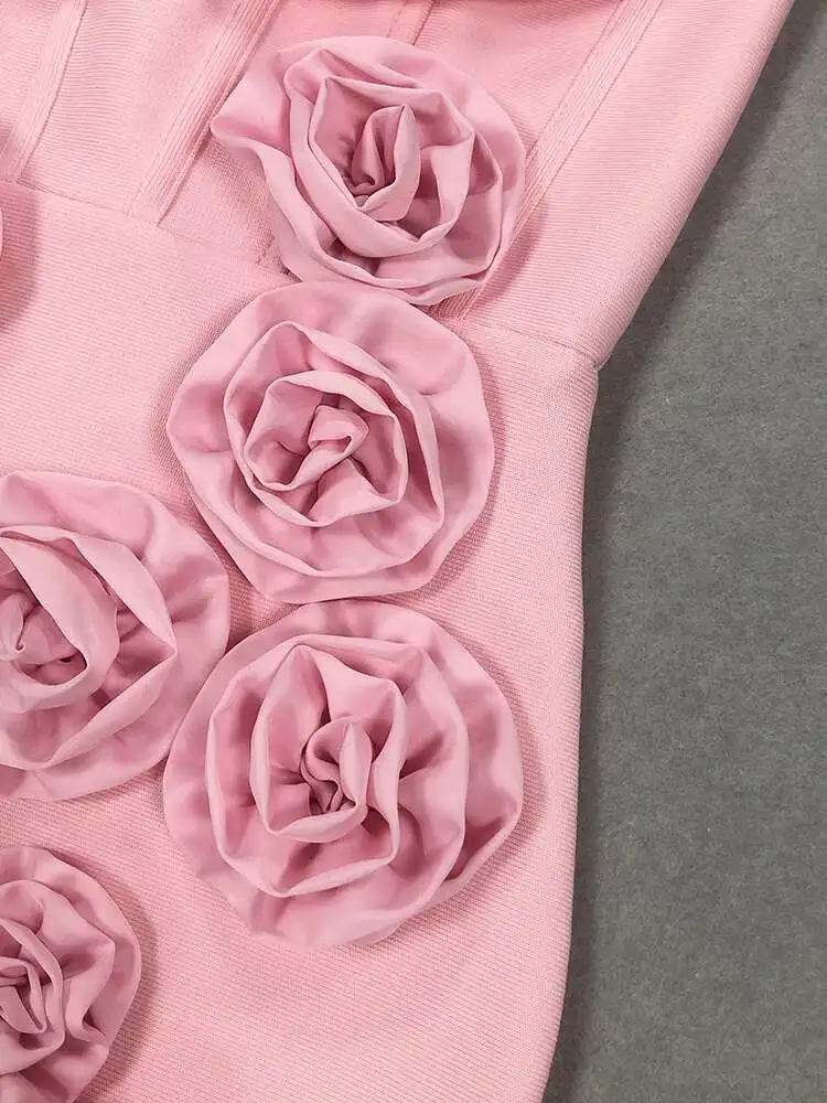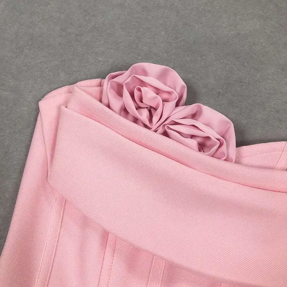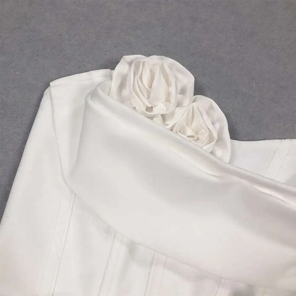 Solid 3D Flowers Spliced Design Dresses Women's Strapless Sleeveless High Waist Slim Elegant Dress Autumn 2025 New