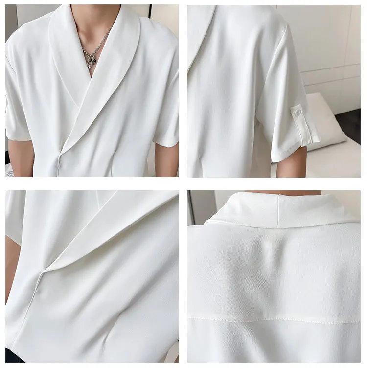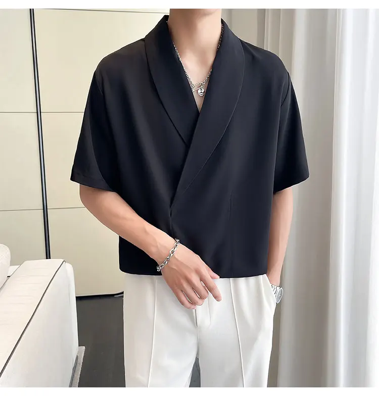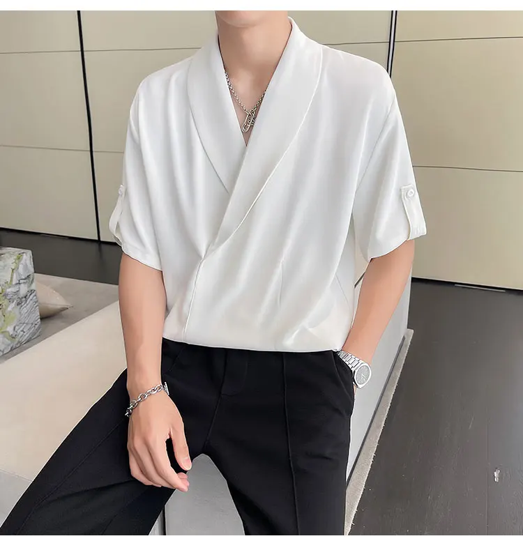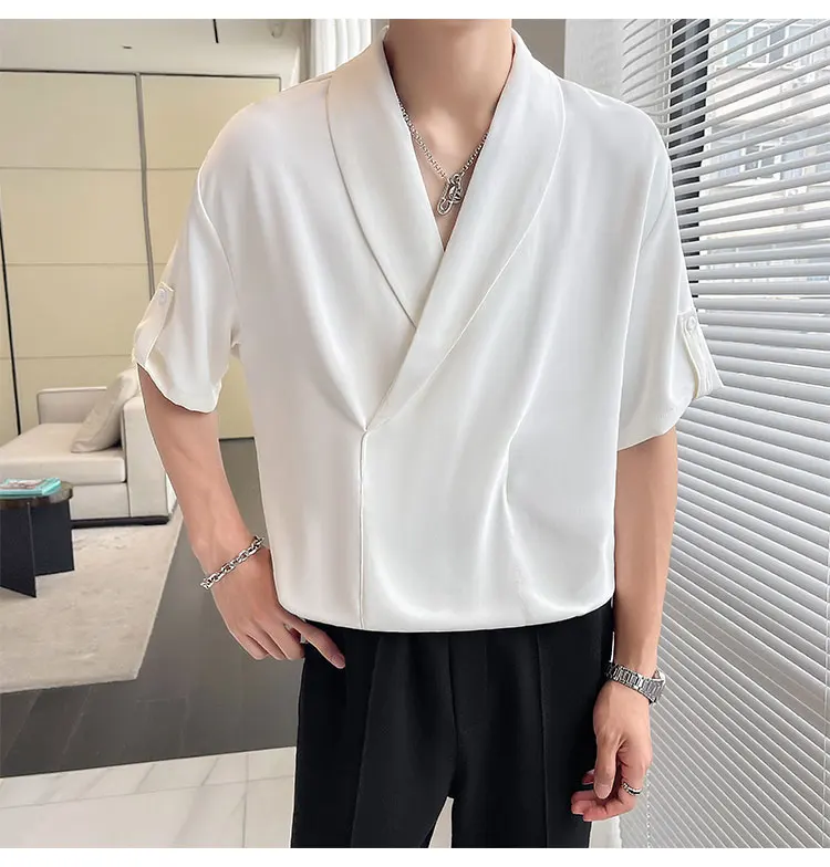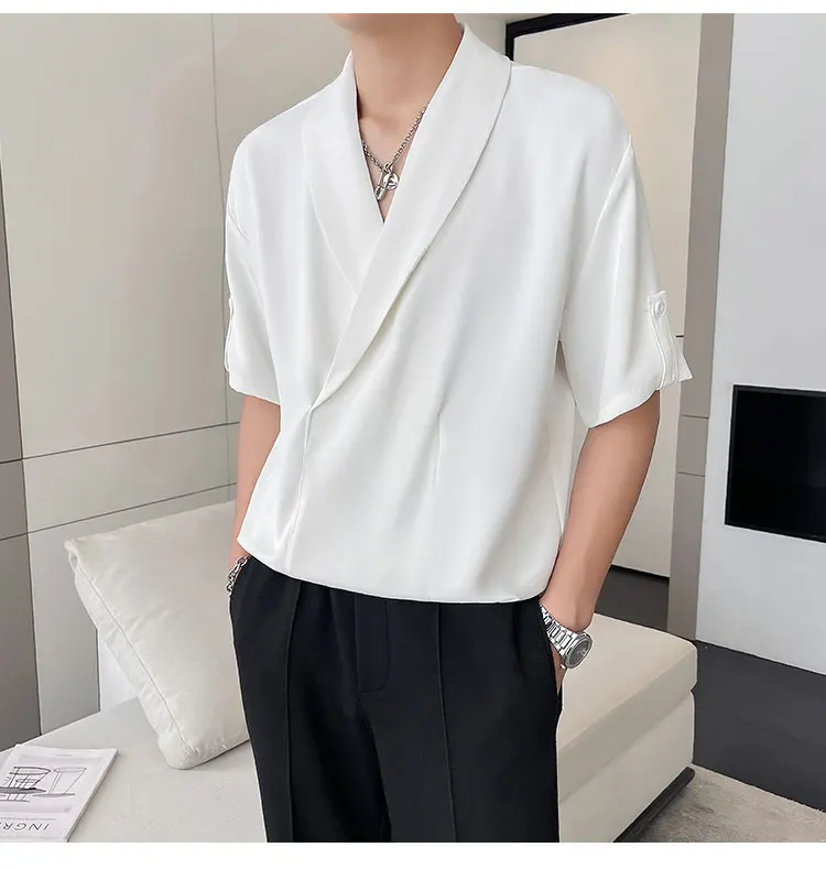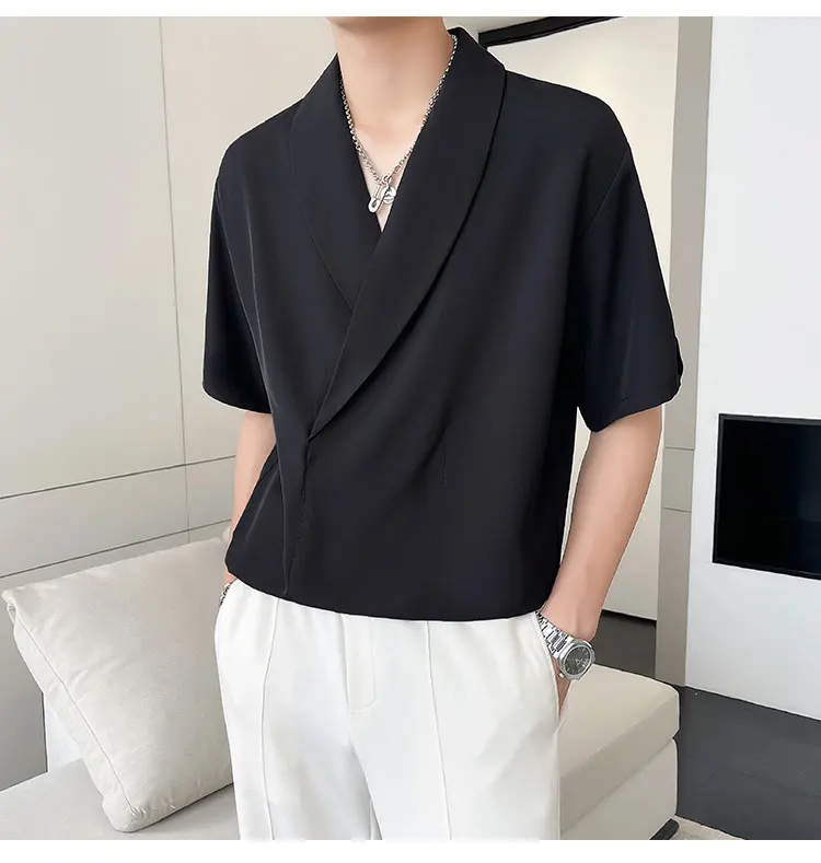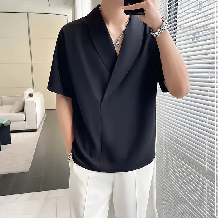 Solid Color Men Apple Collar T Shirt Unique Design Streetwear Fashion Casual Top Trendy Street Performance Tee Comfort Urban