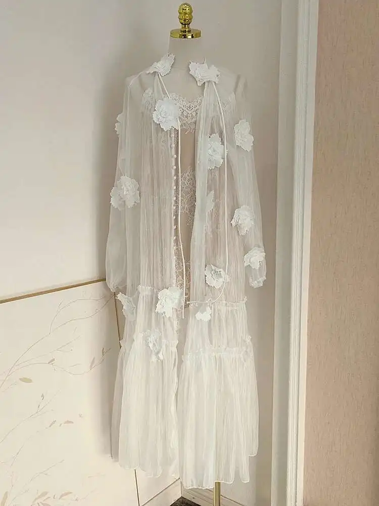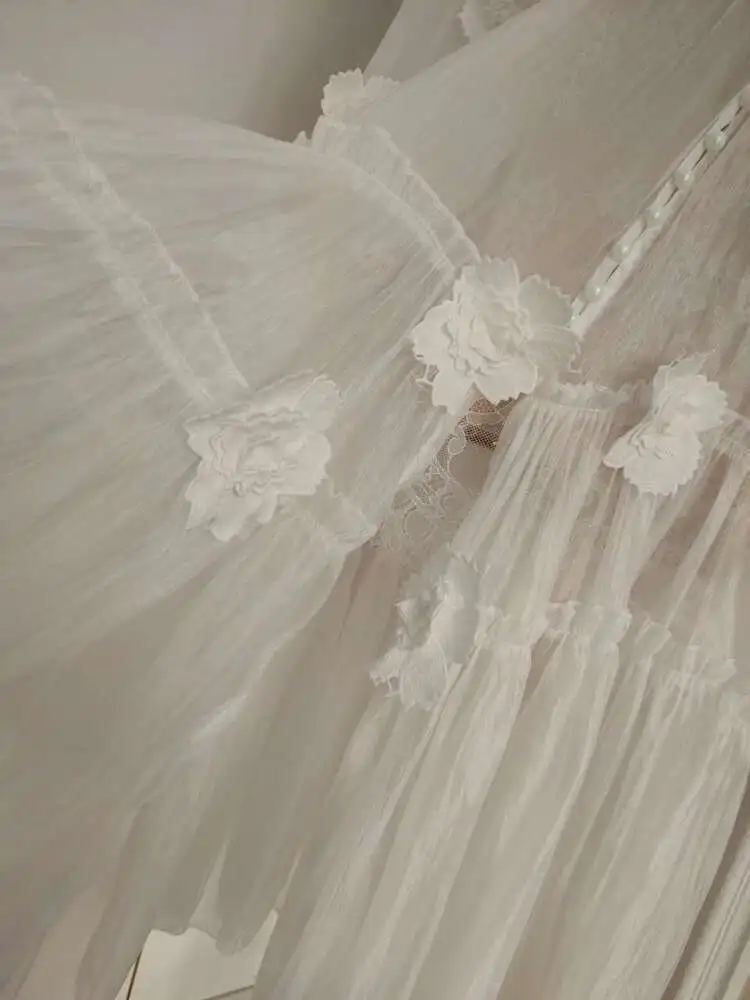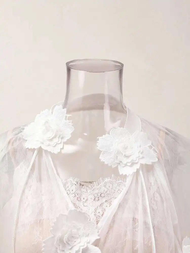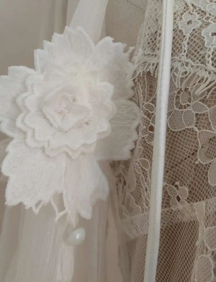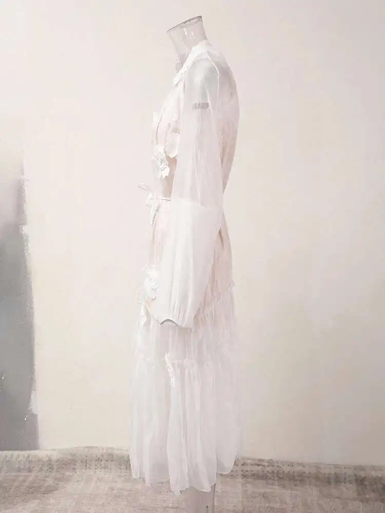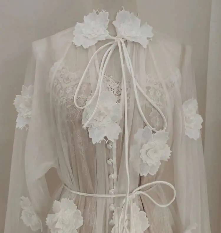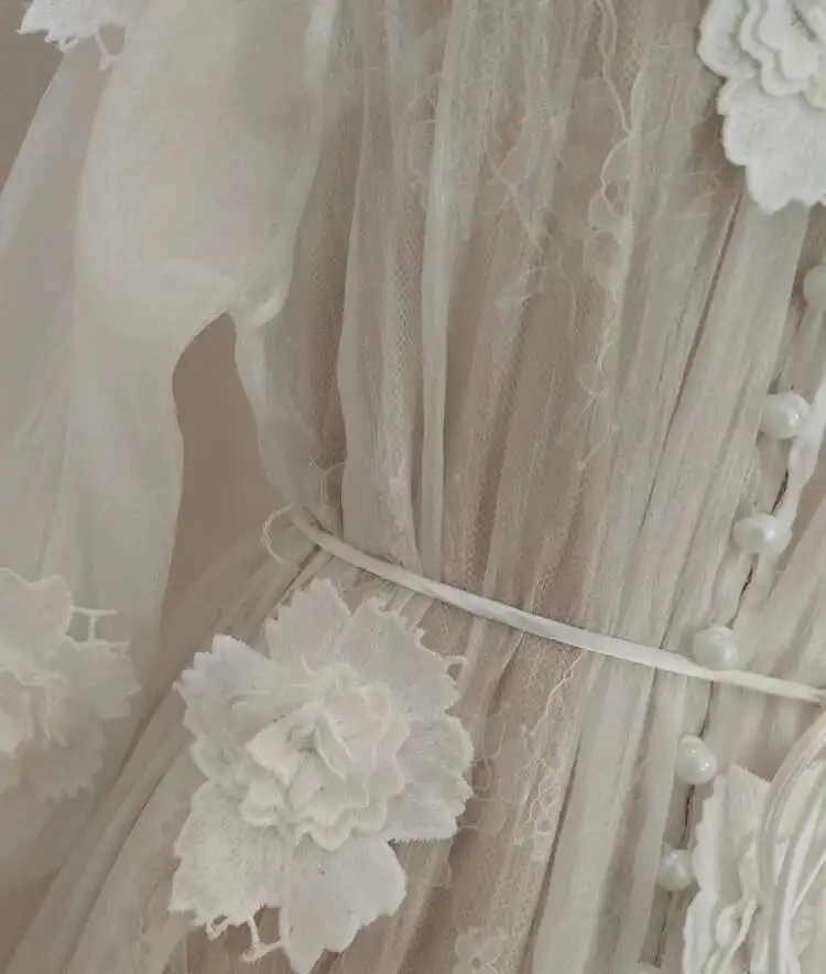 Solid Flower Embroidery Lace Up Dresses For Women Round Neck High Waist Long Sleeve Elegant Dress Summer 2025