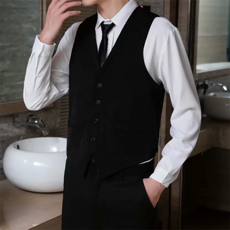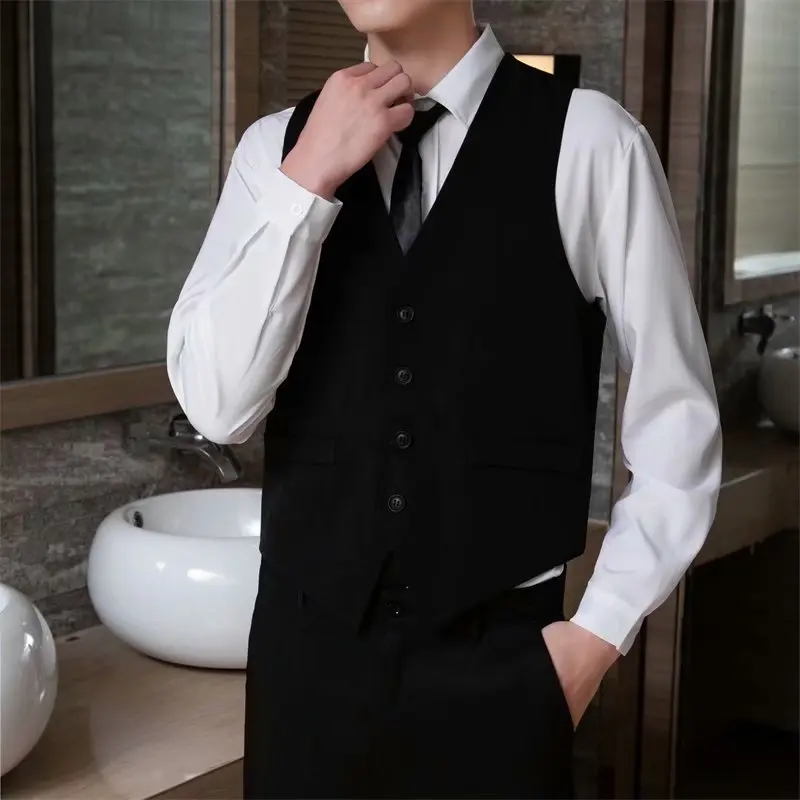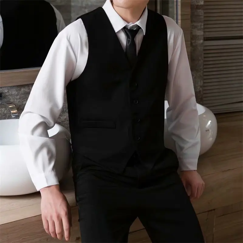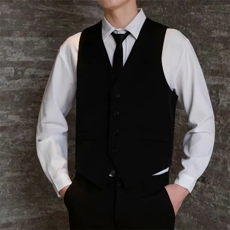 Spring and Autumn Thin British Slim Professional Suit Vests for Men Black Business Casual V-neck Sleeveless Button Men's Vest