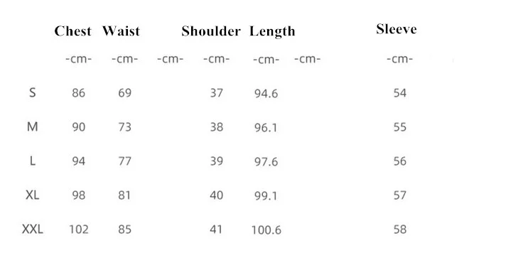 Size 4XL, Chest 110cm, Waist 93cm, Shoulder 43cm, Length 103.6cm, Sleeve 60cm;