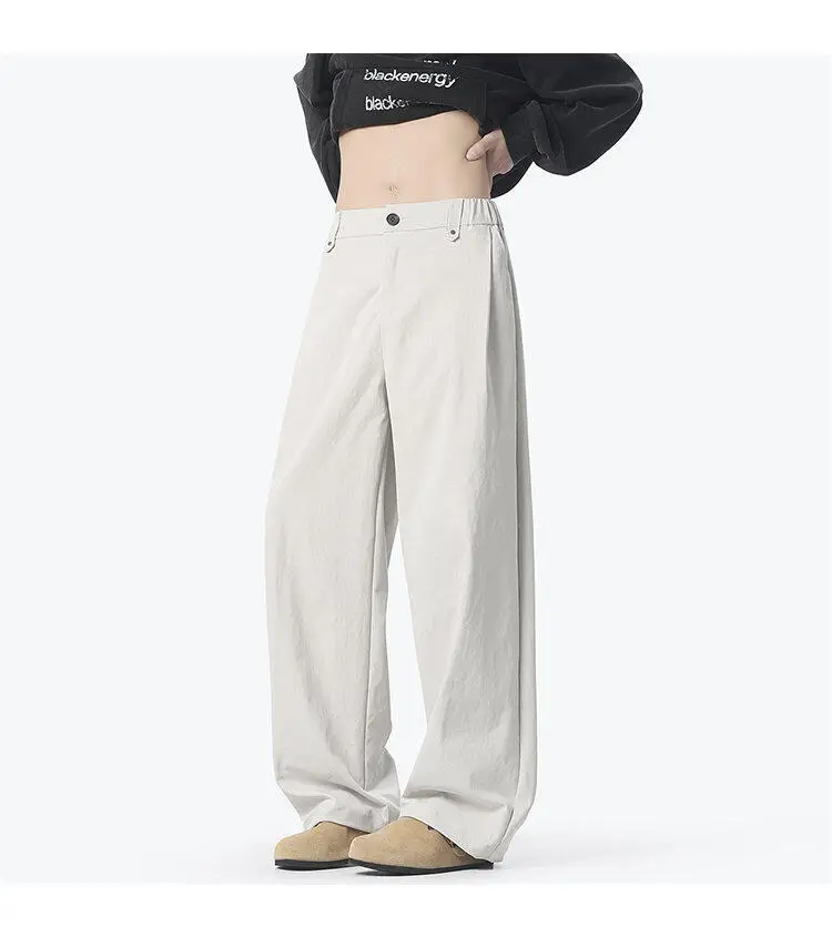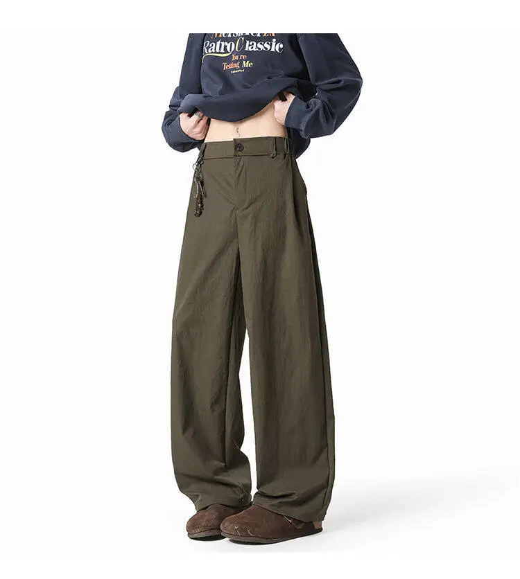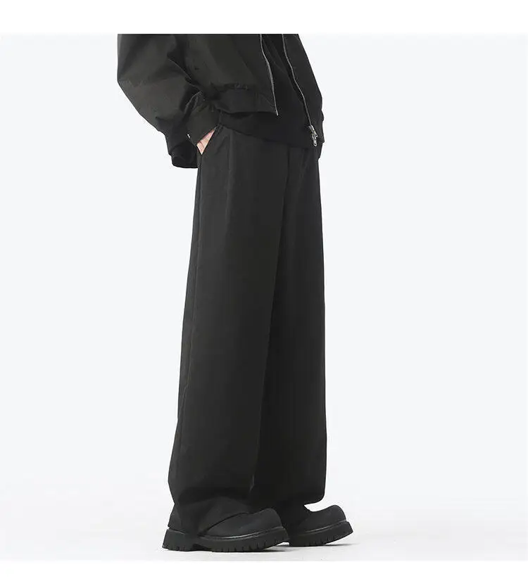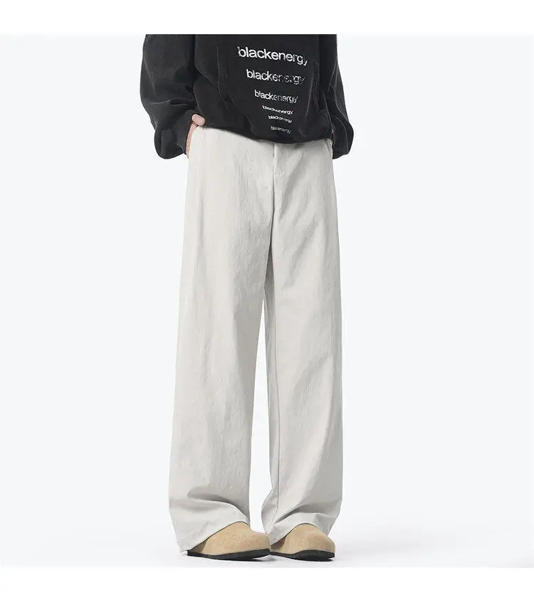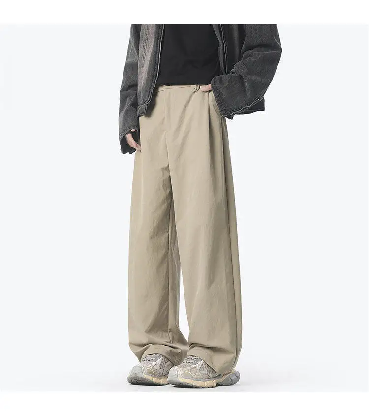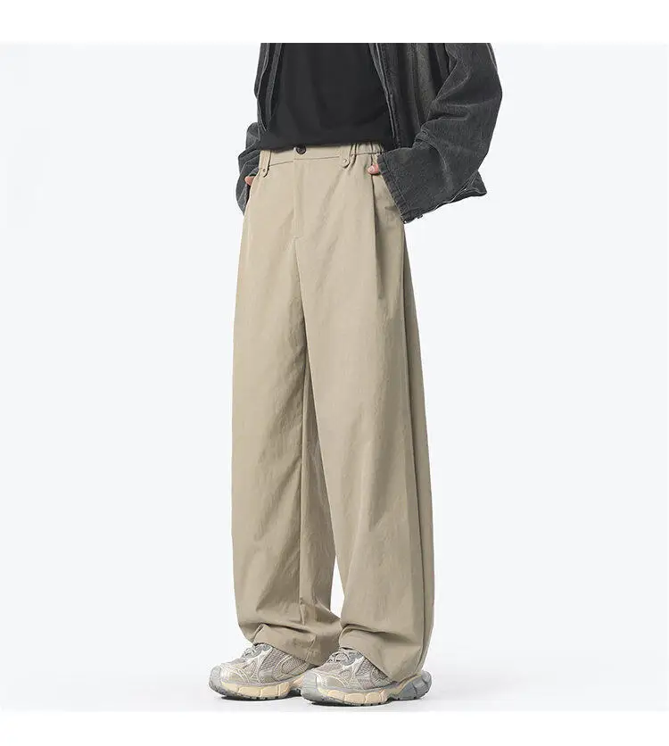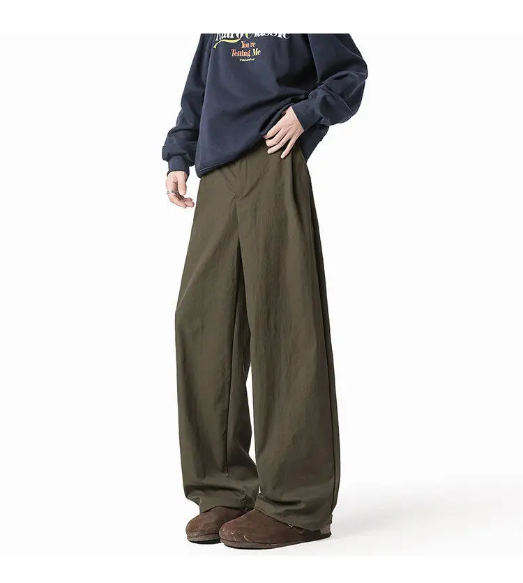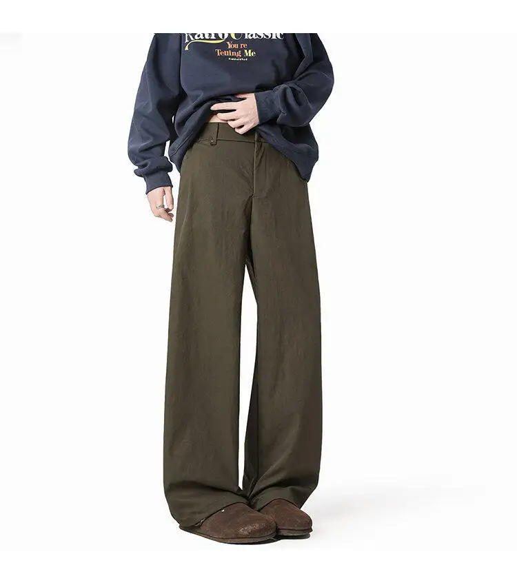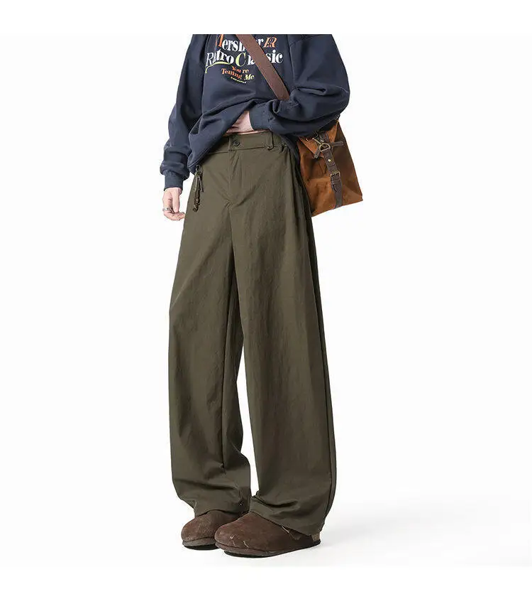 Spring Beige Casual Pants Men Fashion Black Wide Leg Pants Men Streetwear Korean Loose Straight Pants Mens Green Trousers
