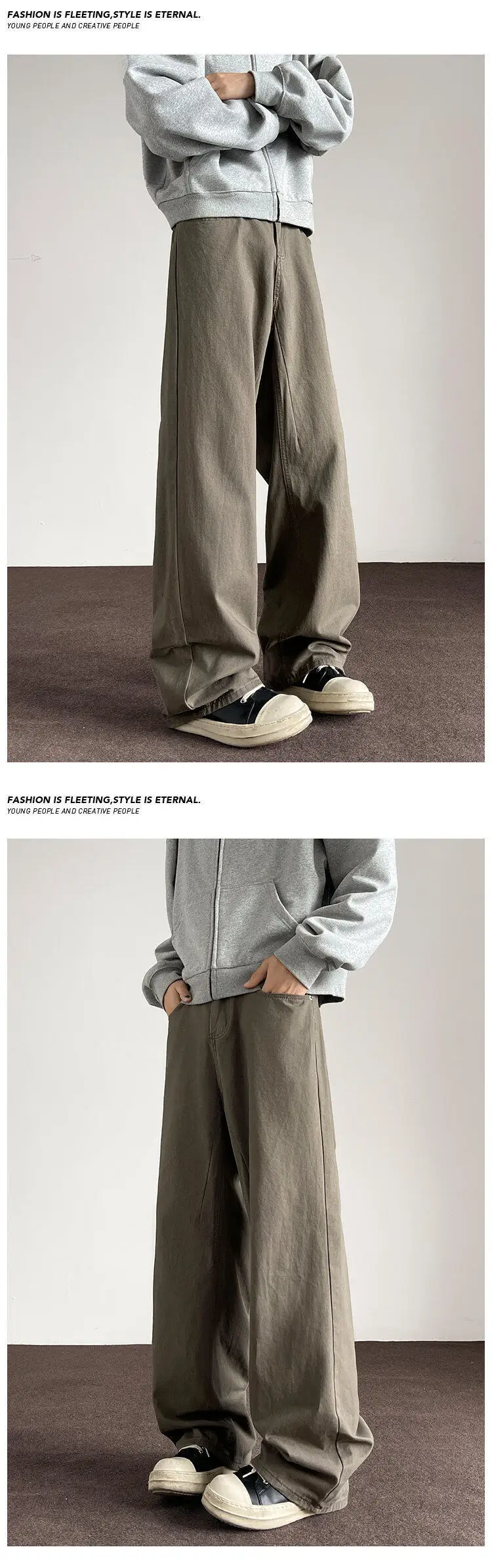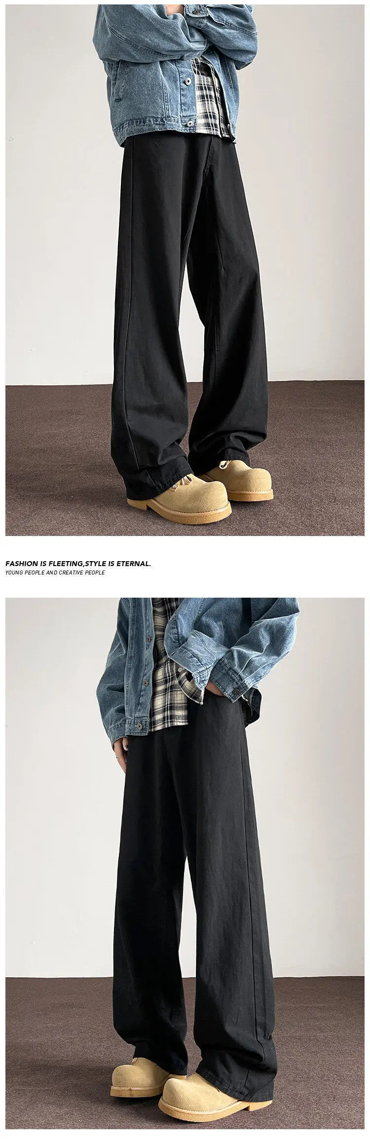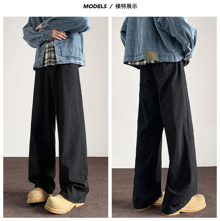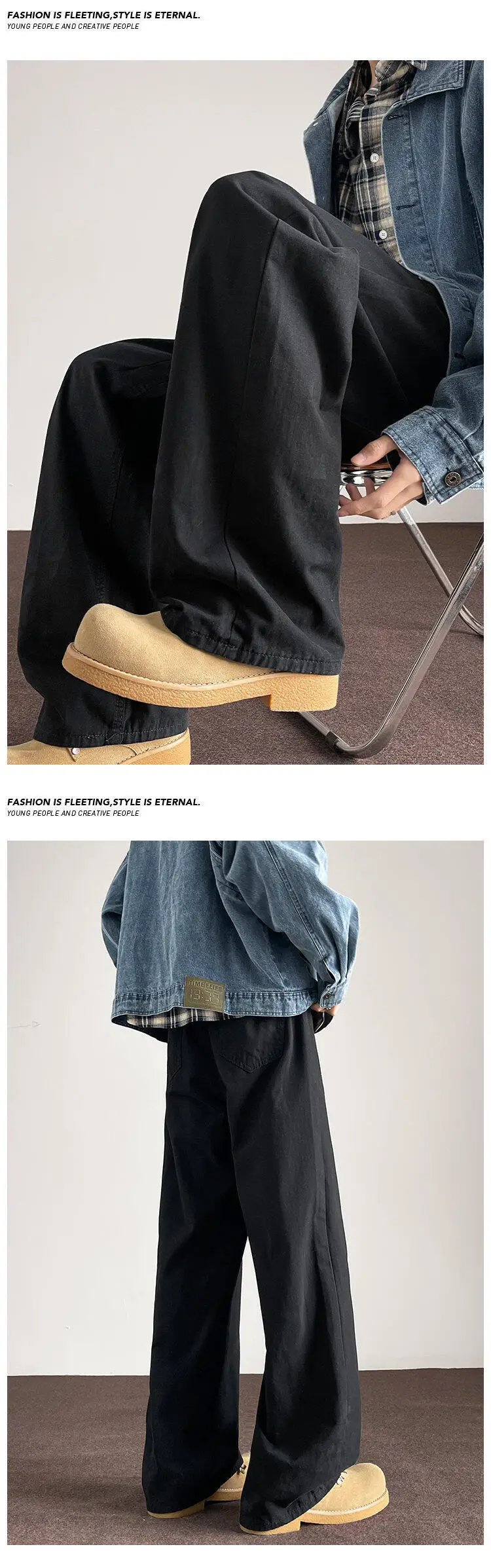 Spring Black Casual Pants Men Fashion Retro Washed Straight Pants Men Streetwear Korean Vintage Trousers Mens Clothing M-3XL