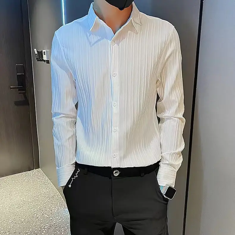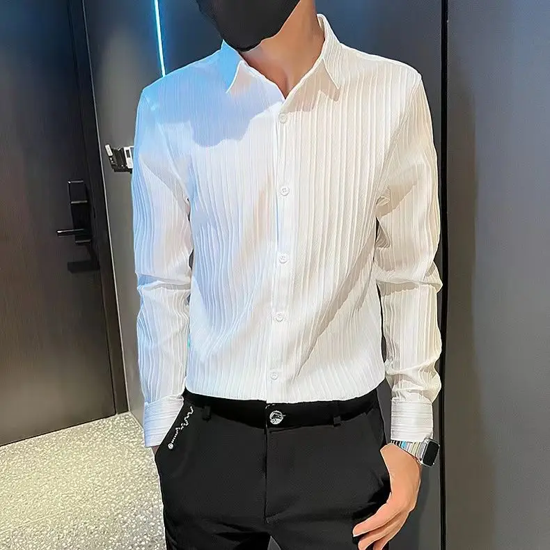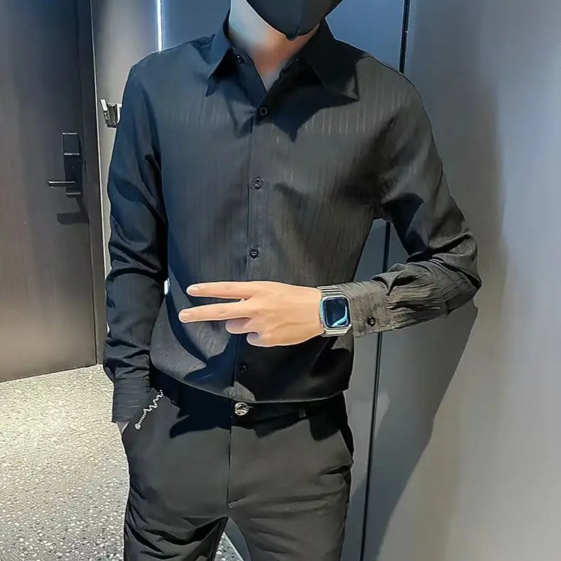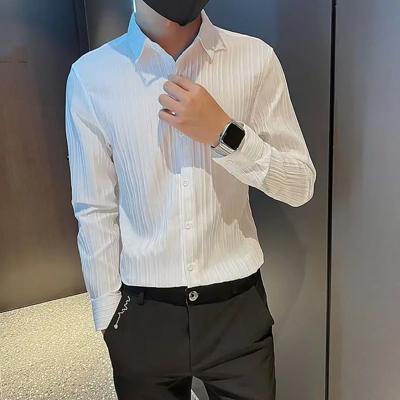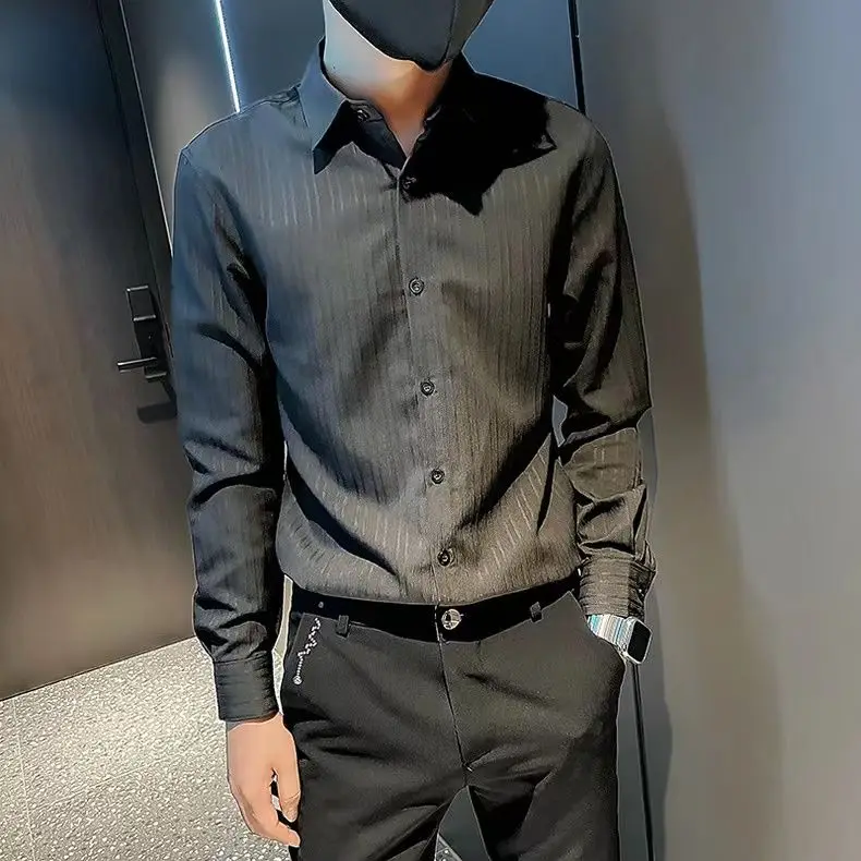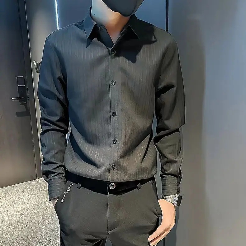 Spring KPOP Fashion Style Harajuku Slim Fit Tops Loose Casual All Match Shirt Spring Square Neck Long Sleeve Stripe Button Blusa