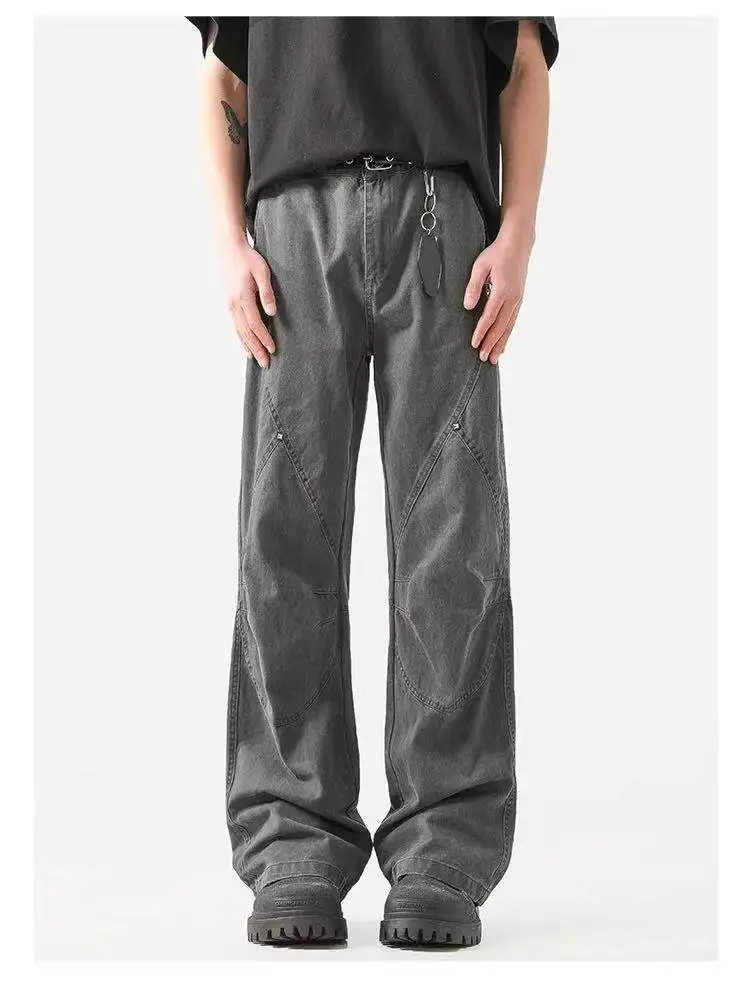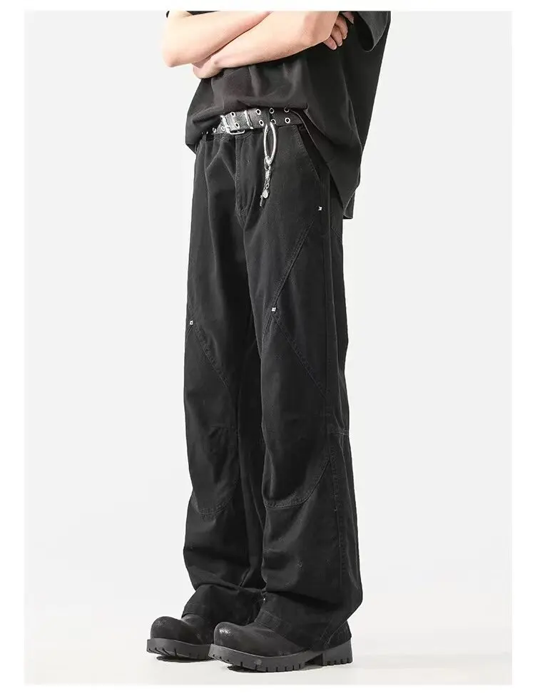Straight Leg Jeans men Patchwork Design Vintage Retro Wash Distressed Denim Pants High Quality Streetwear Trendy Style
