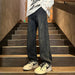 Straight Leg Jeans Men Washed Solid Trousers Panel Design Denim Pants Autumn Fall Male Wear New 2025 High-quality denim pants