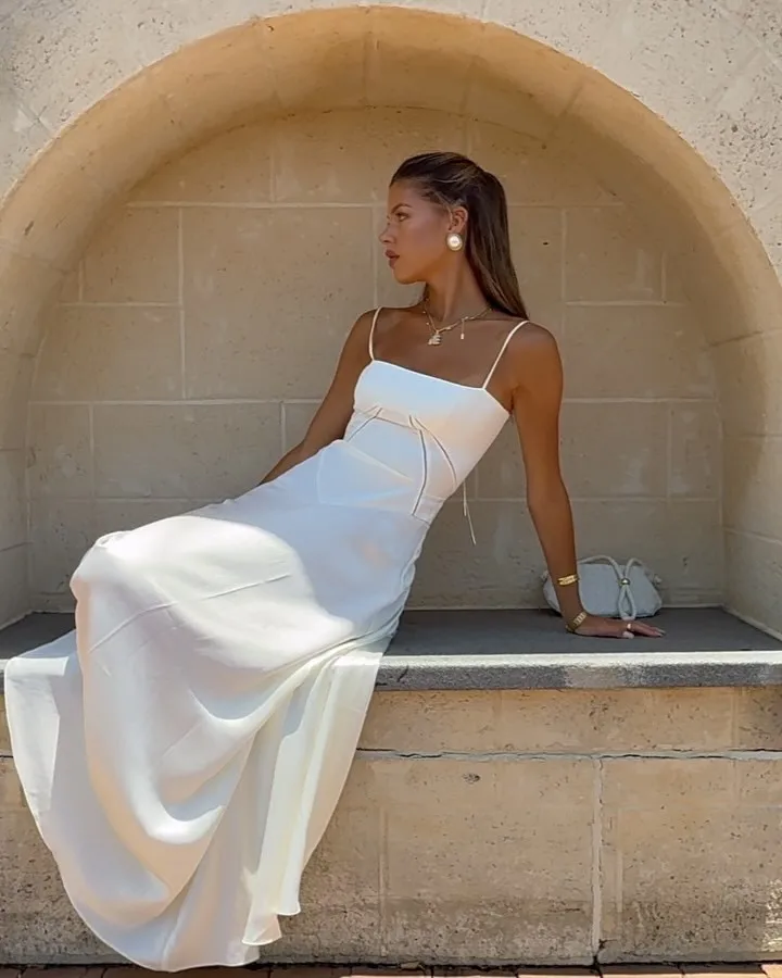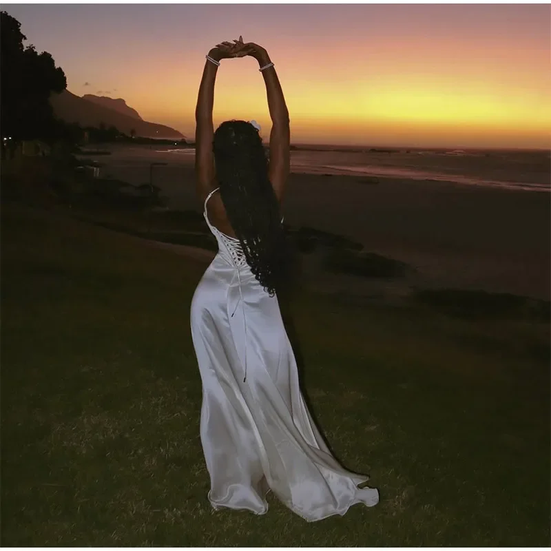 Strap Backless Lace Up Elegant Women's Long Dress Square Neck Sleeveless Solid Color Vestidos Lady Summer Solid Color Beach Robe