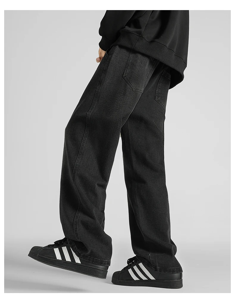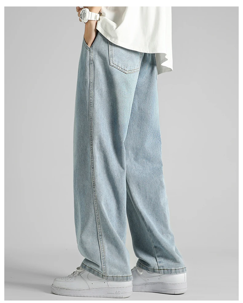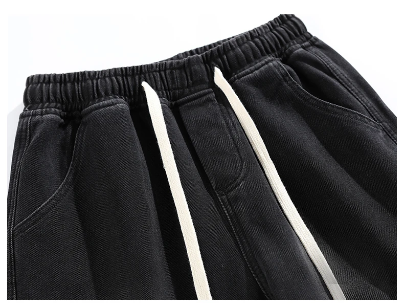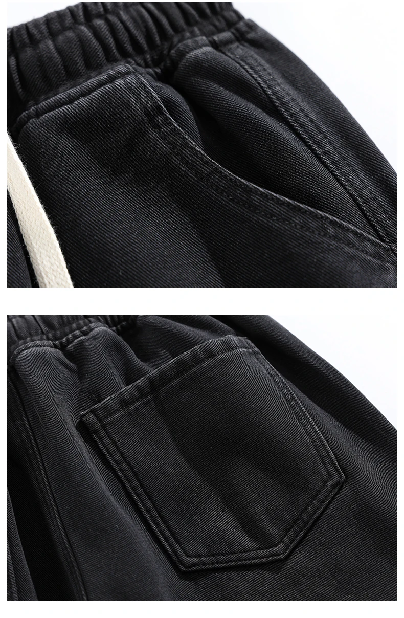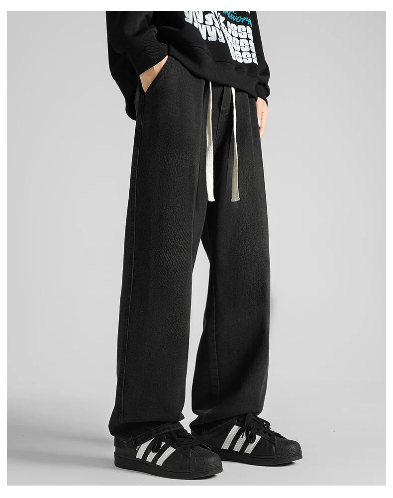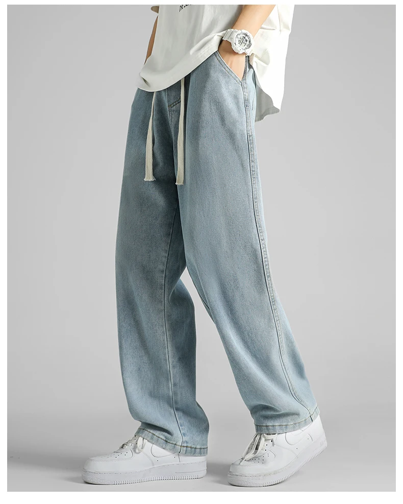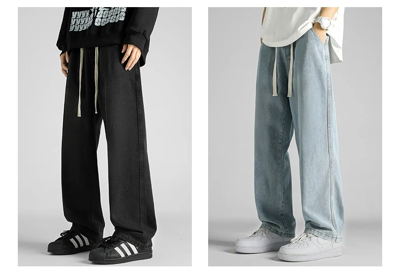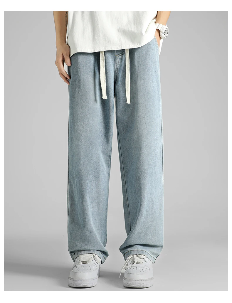 Streetwear Men's Clothing Jeans Loose Straight Casual Fashion Baggy Denim Trousers Solid Color New Korean Drawstring Men Pants