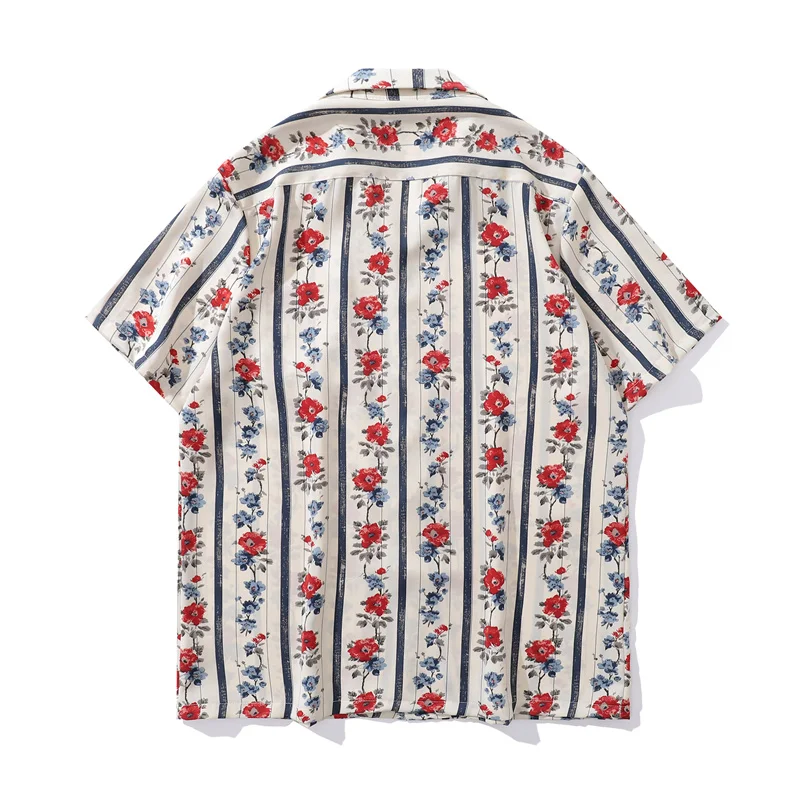 Striped Flower Tropic Hawaiian Shirts for Men Summer Retro Shirt Unisex Clothing