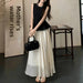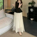 Summer 2025 New Hepburn Style Women's Heavy Embellished Top And Skirt Set with Pearlescent Fabric Elegant And High-End Feeling