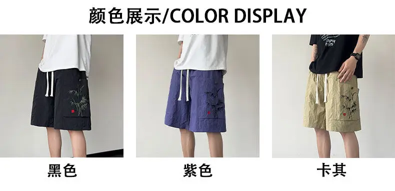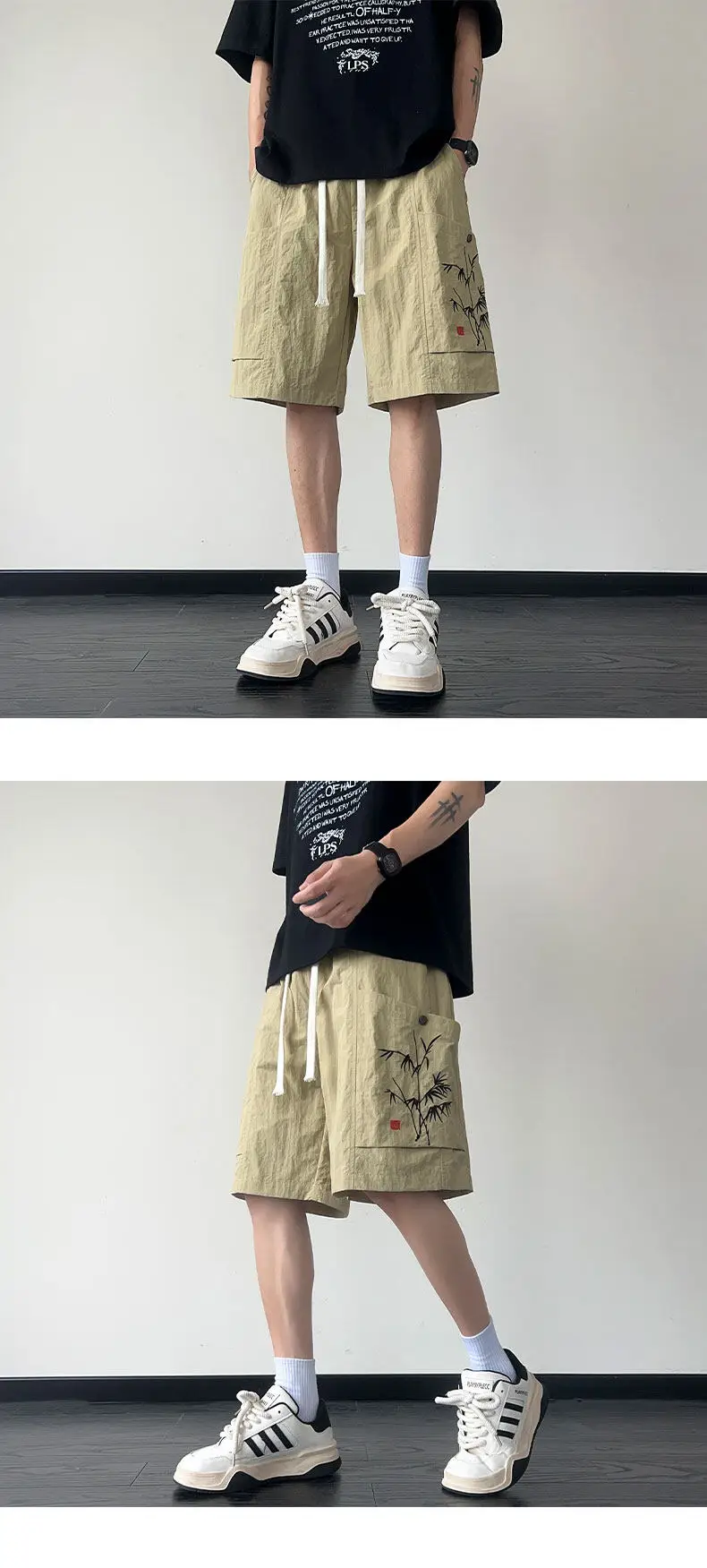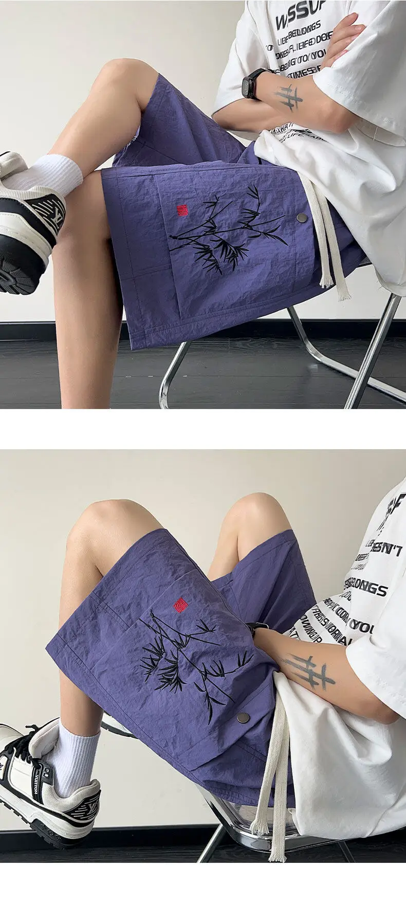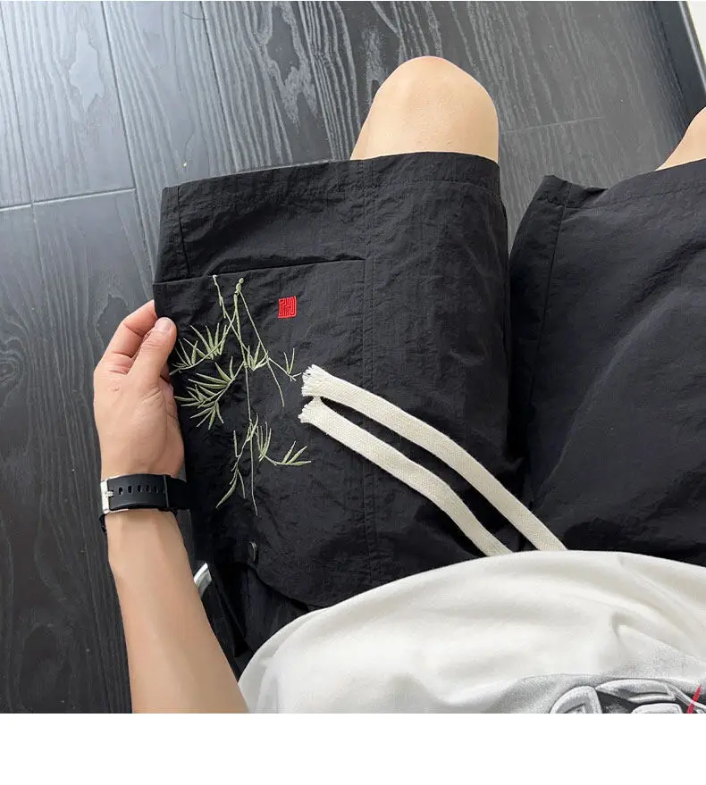 Summer Men Outdoor Casual Athletic Shorts Chinese Embroidery Design Quick Dry Breathable Lightweight Comfort Sports Short Pants