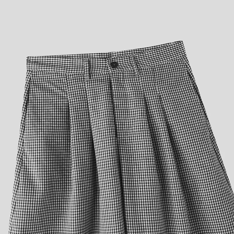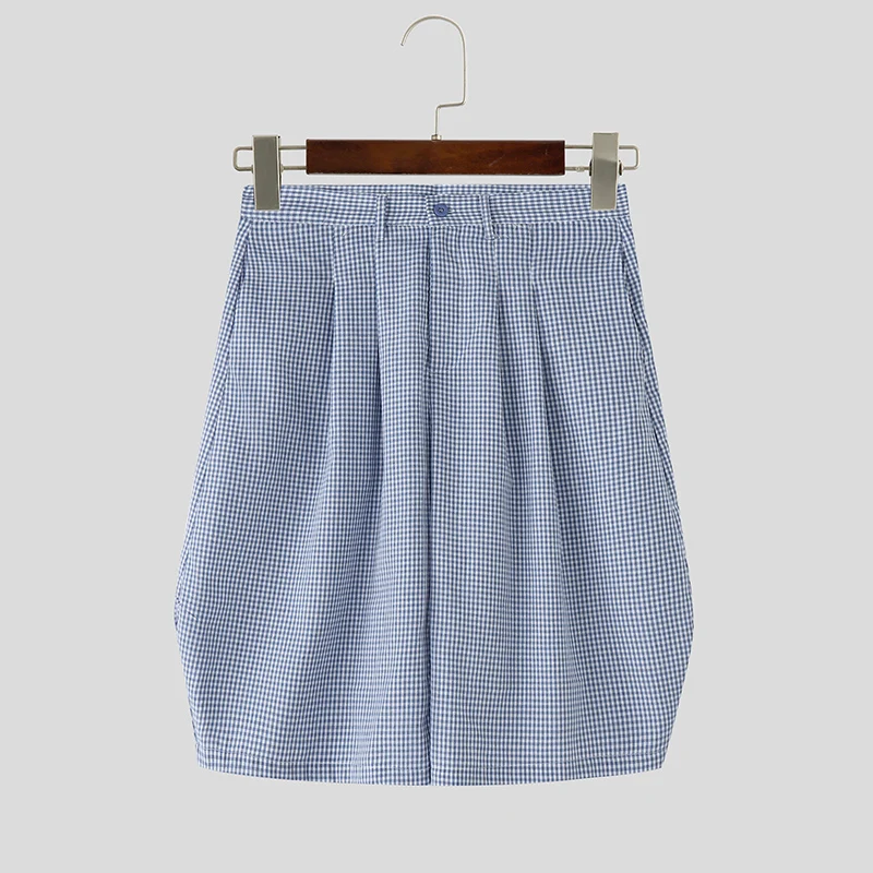 Summer Men Shorts Plaid Button Joggers Leisure Men Bottoms Streetwear 2025 Loose Oversize Fashion Casual Male Shorts