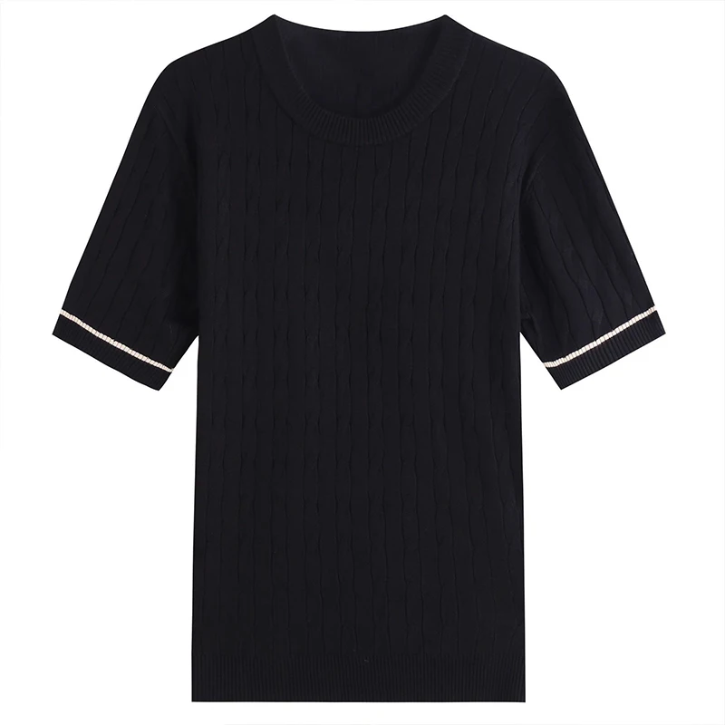 Summer Men's Clothing Luxury Knit O Neck Short-sleeved T Shirt Solid Color Leisure Korean Popular Streetwear Retro Knitwear