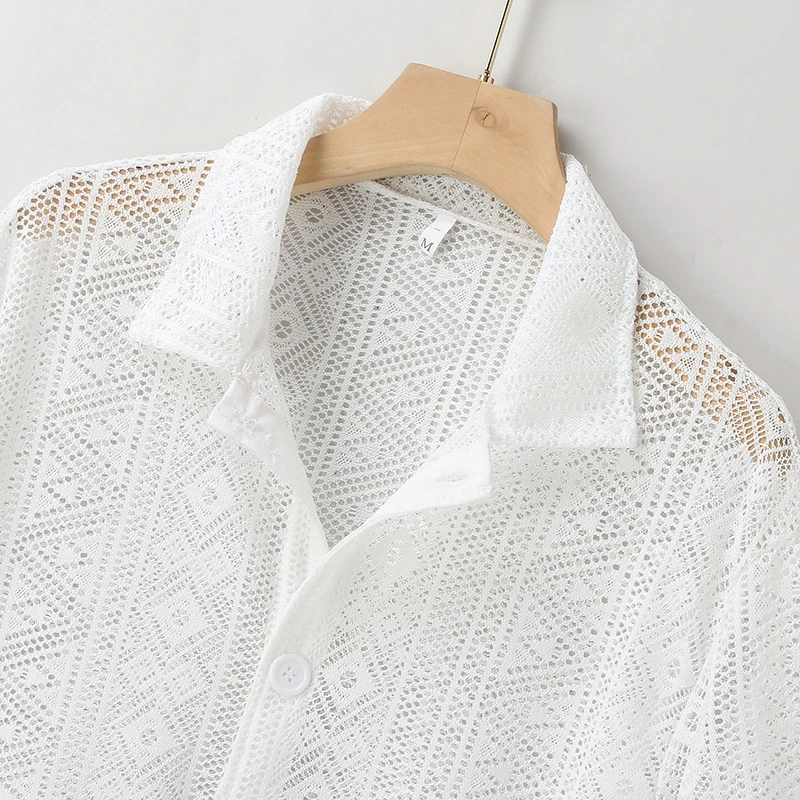 Summer Men's Clothing Mesh See Through Mesh Sexy Shirt Short Sleeve Fishnet Button-down Retro Chic Streetwear Party Blouse S-5XL