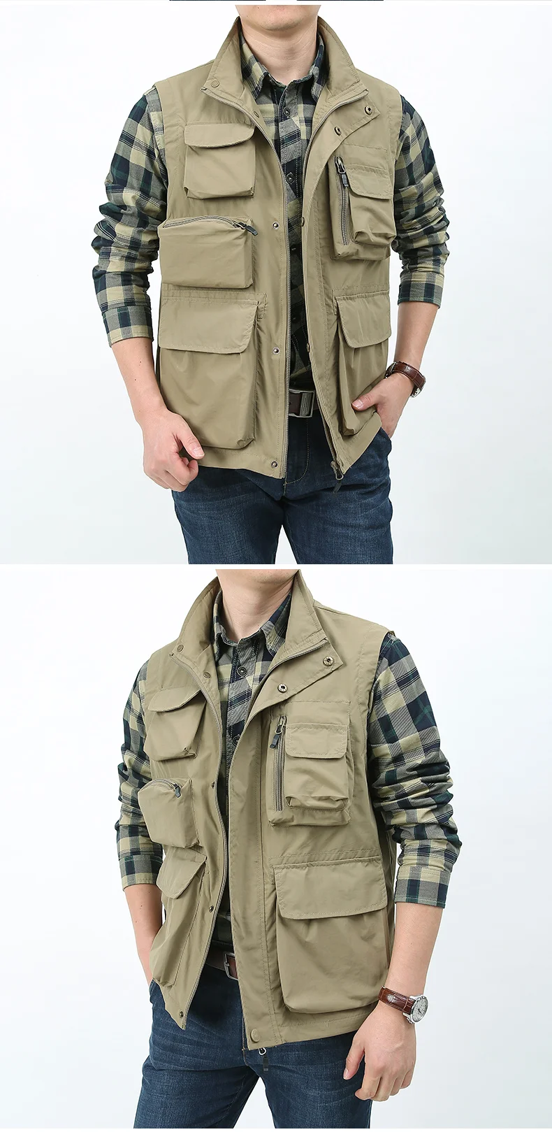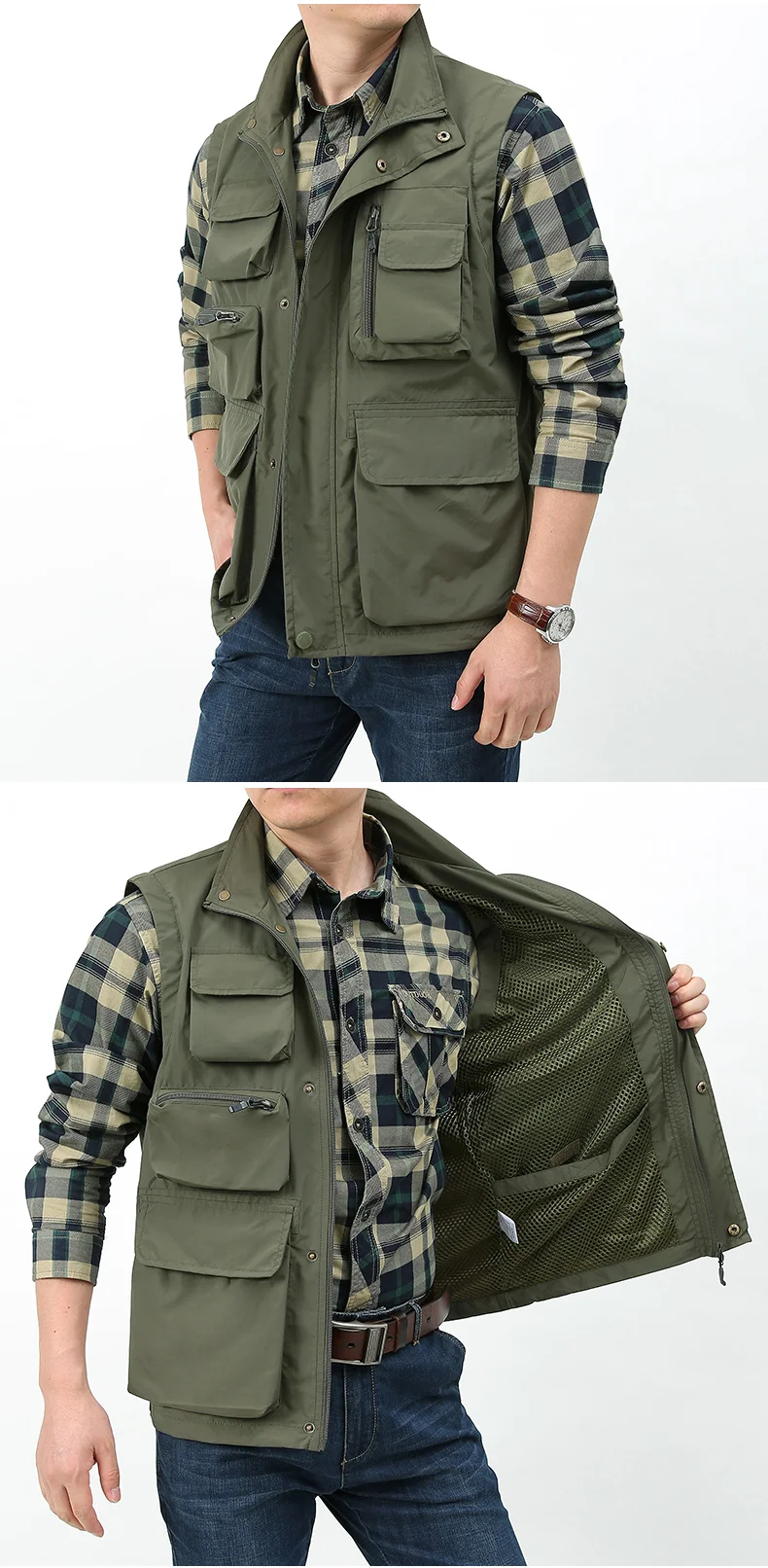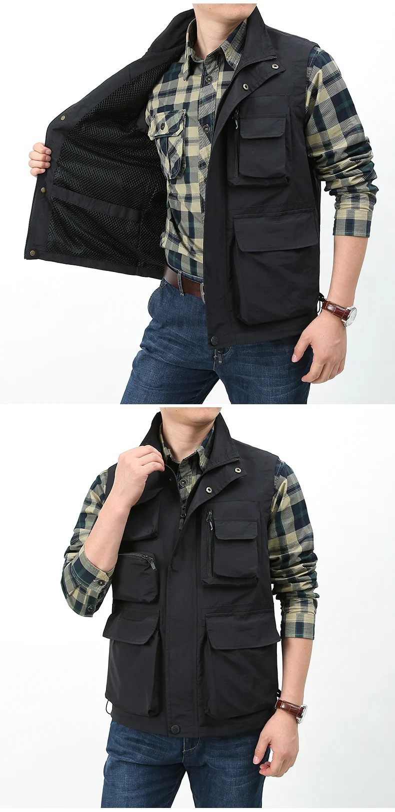 Summer Outdoor Photographer Waistcoat Men's Unloading Vest Tactical Webbed Gear Coat Tool Many Pocket Work Sleeveless Jacket Man