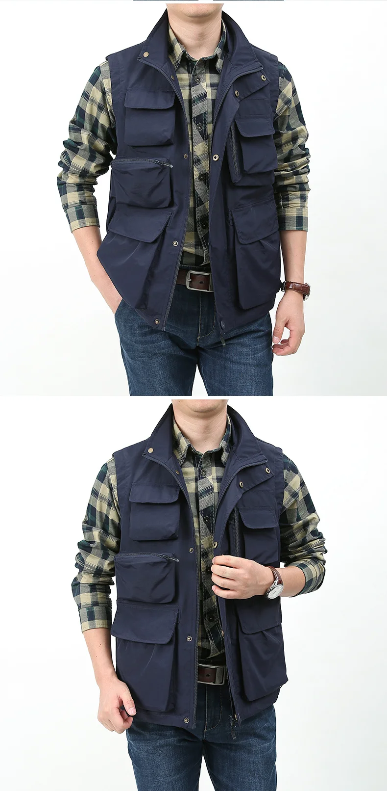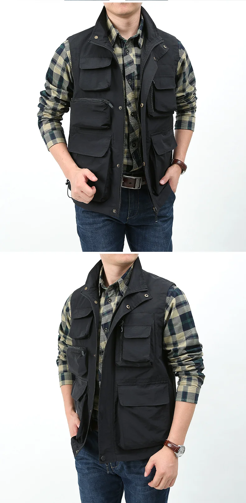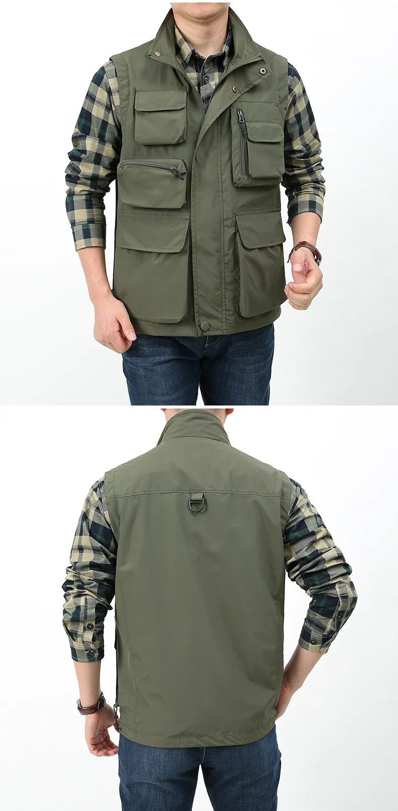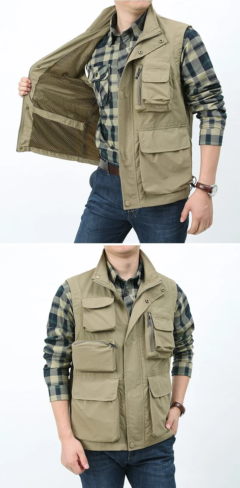 Summer Outdoor Photographer Waistcoat Men's Unloading Vest Tactical Webbed Gear Coat Tool Many Pocket Work Sleeveless Jacket Man
