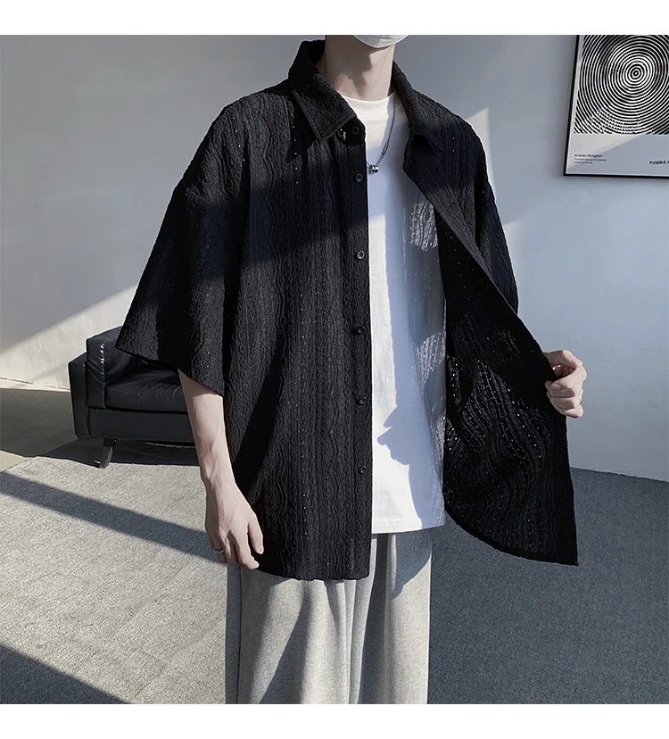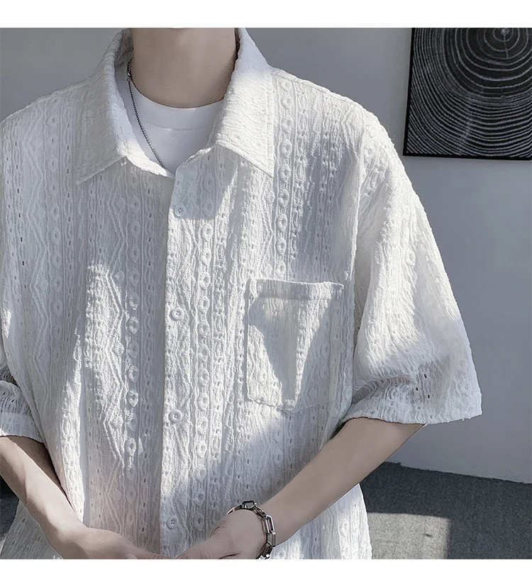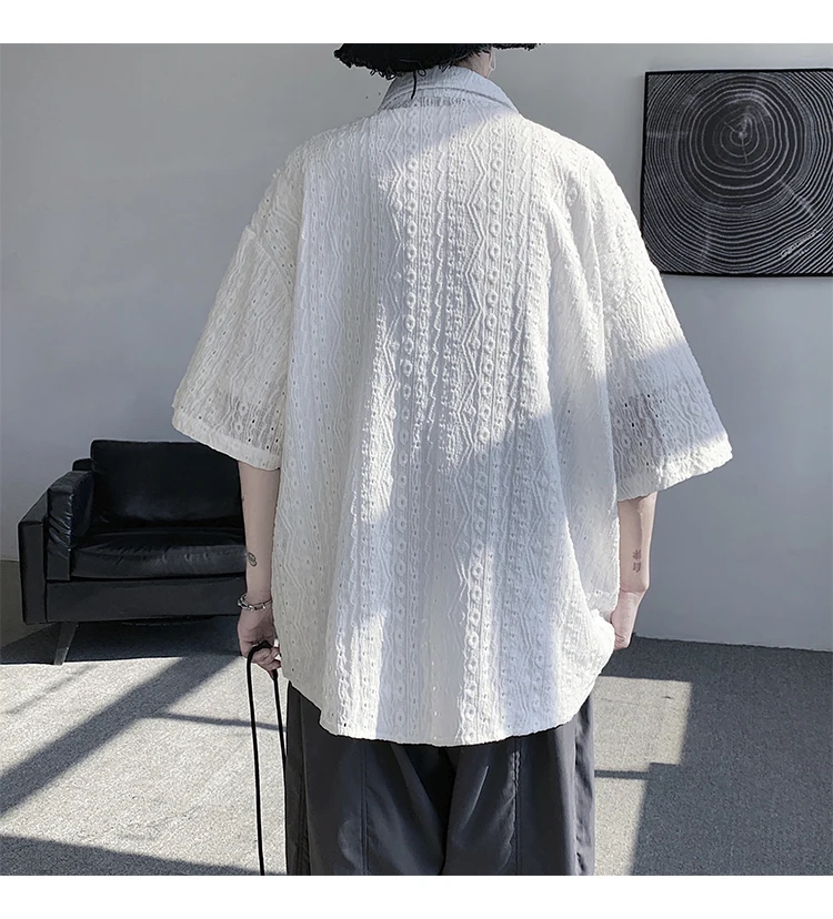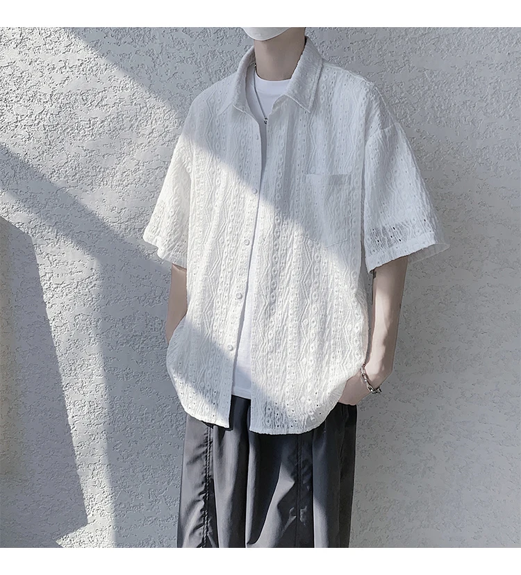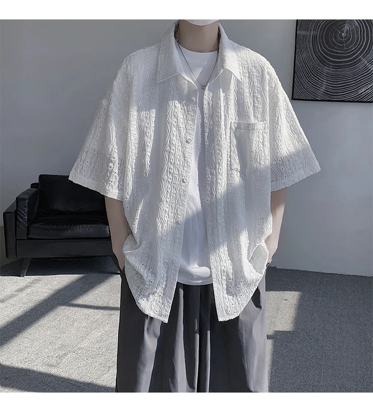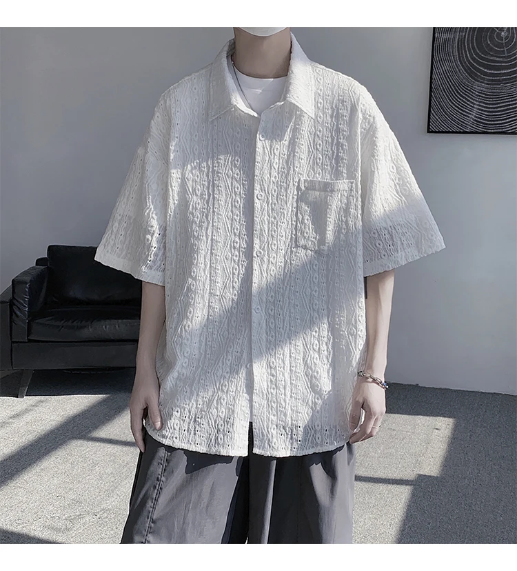 Summer Short Sleeved Shirt Men Casual White Shirt Men Streetwear Hip-hop Loose Hollow Shirt Mens Hawaiian Shirt Plus Size 5XL