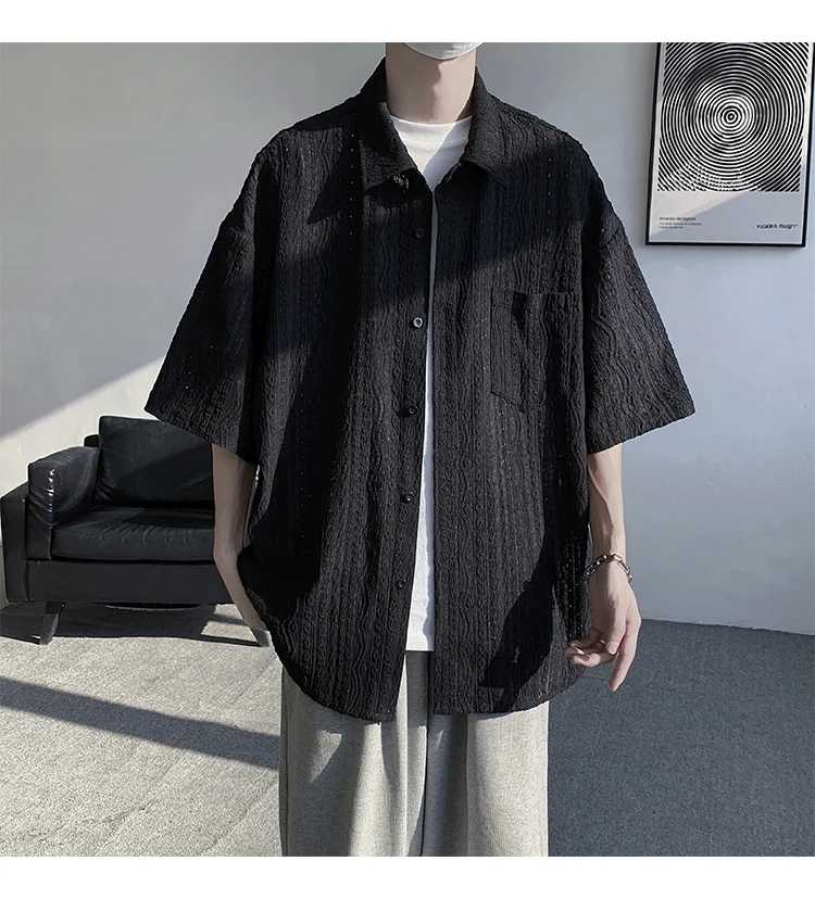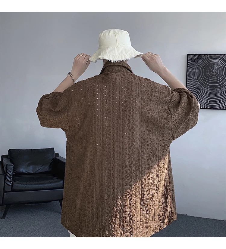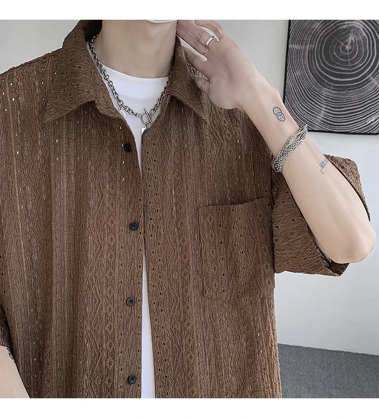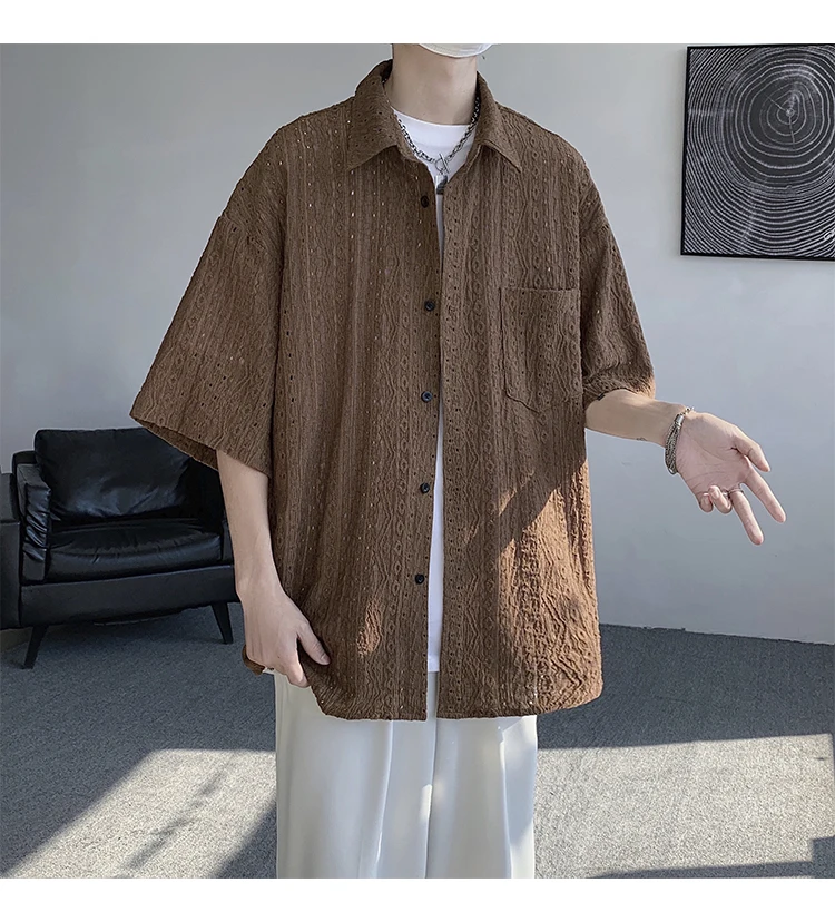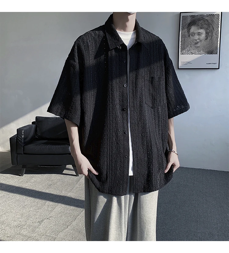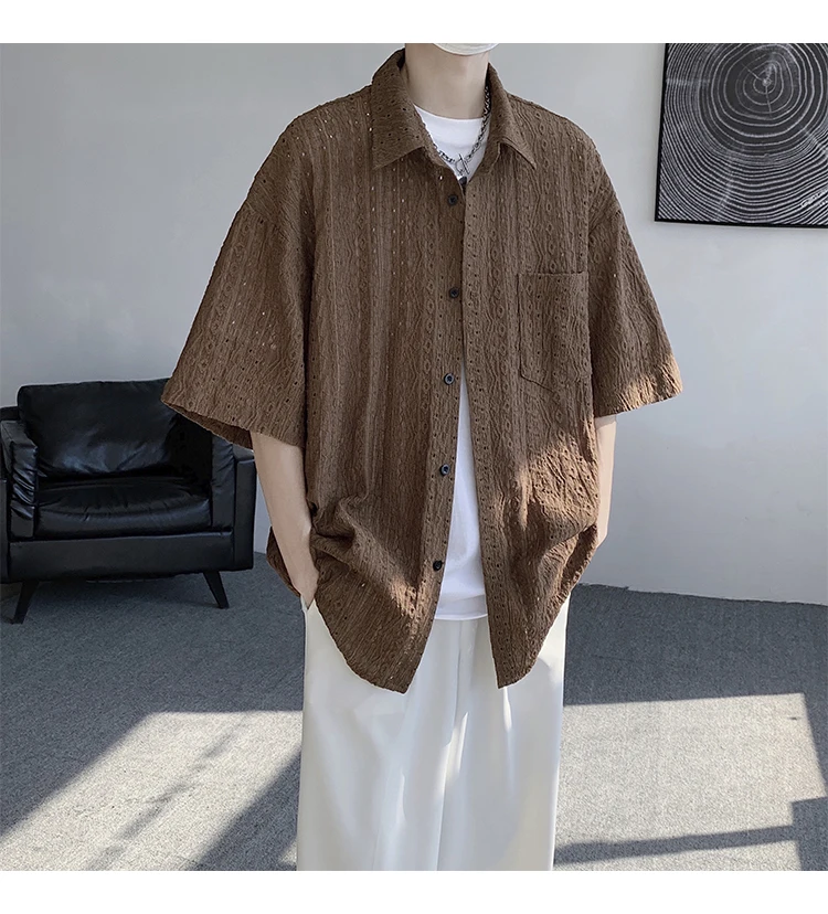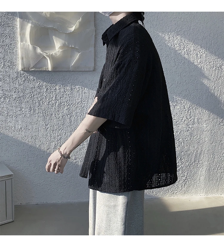 Summer Short Sleeved Shirt Men Casual White Shirt Men Streetwear Hip-hop Loose Hollow Shirt Mens Hawaiian Shirt Plus Size 5XL