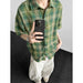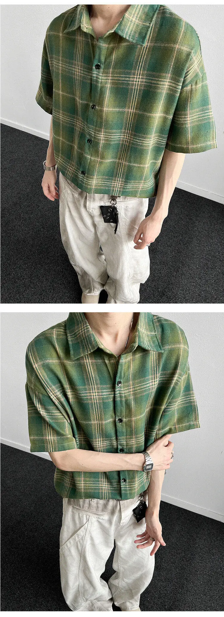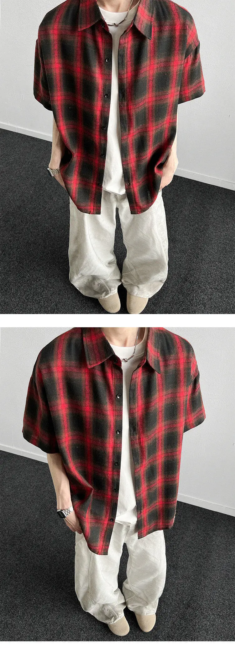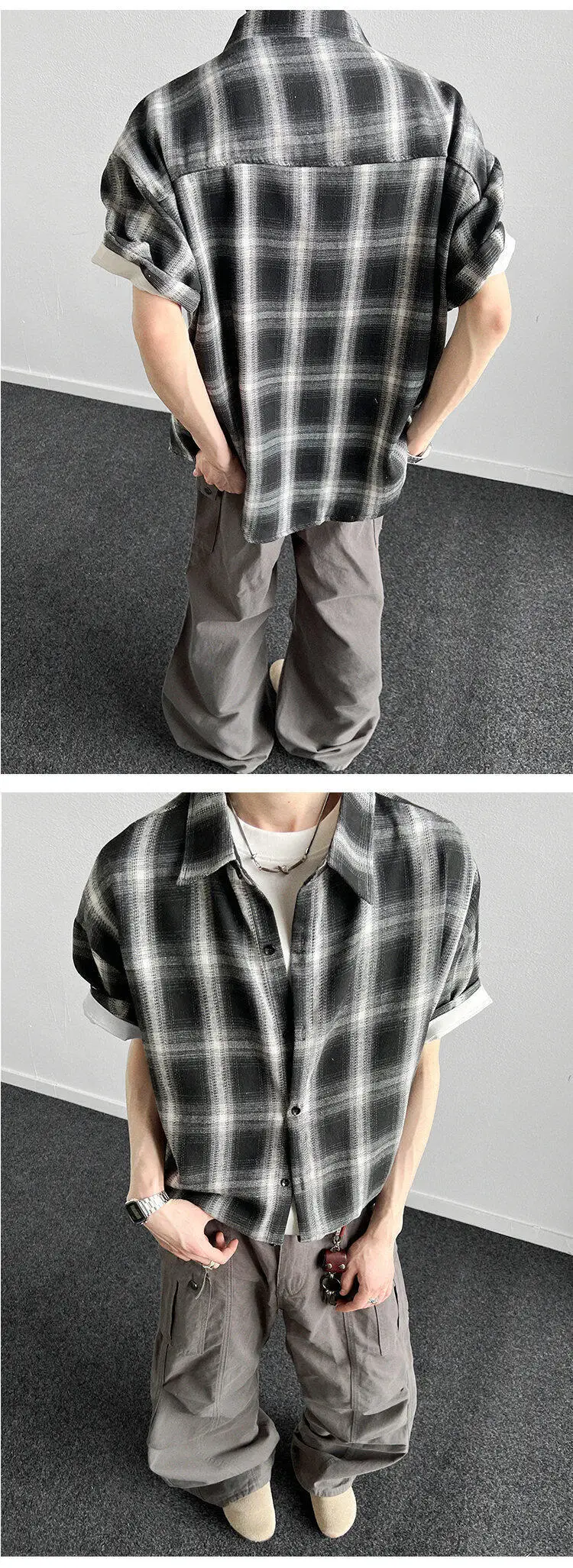 Summer Short Sleeved Shirt Men Fashion Retro Casual Shirt Men Japanese Streetwear Loose Plaid Shirt Mens Vintage Shirts M-3XL