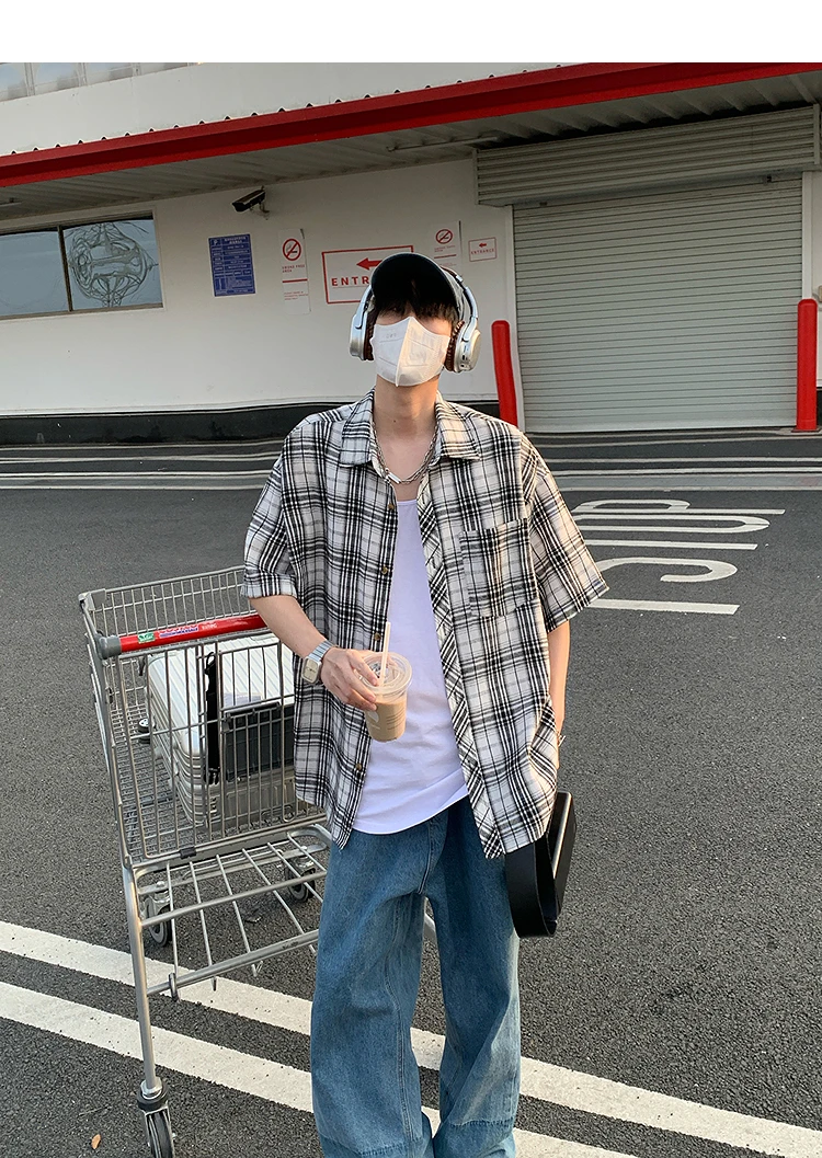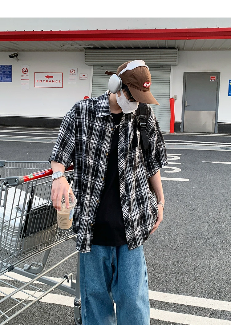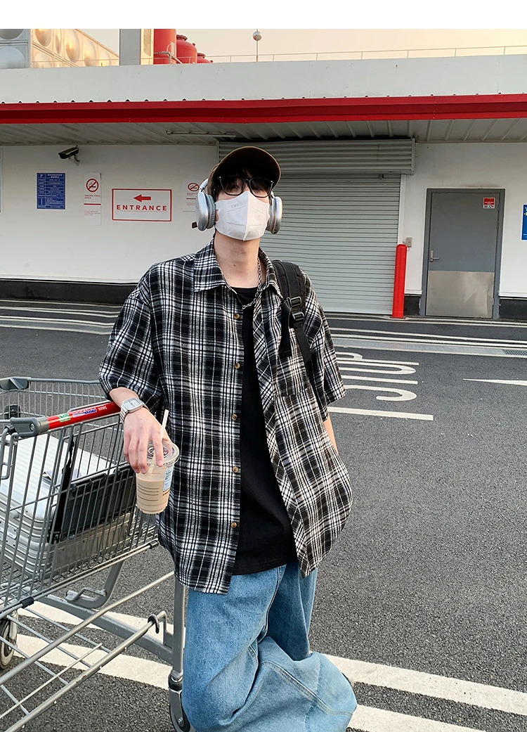 Summer Short Sleeved Shirt Men Retro Plaid Shirt Men Streetwear Korean Loose Casual Shirt Man Fashion Shirts Large Size 4XL