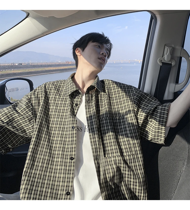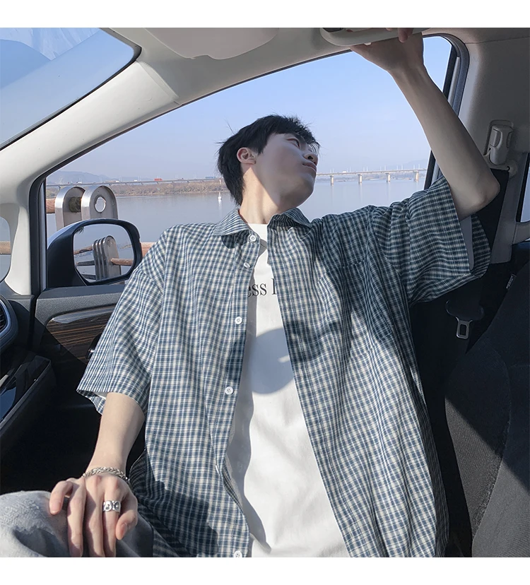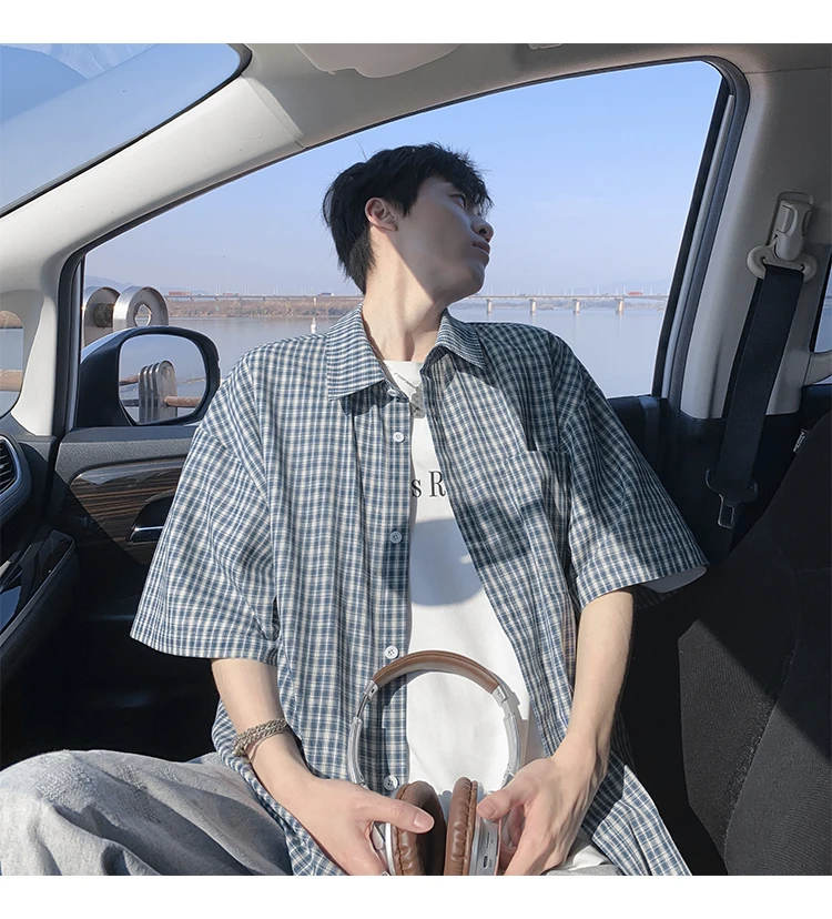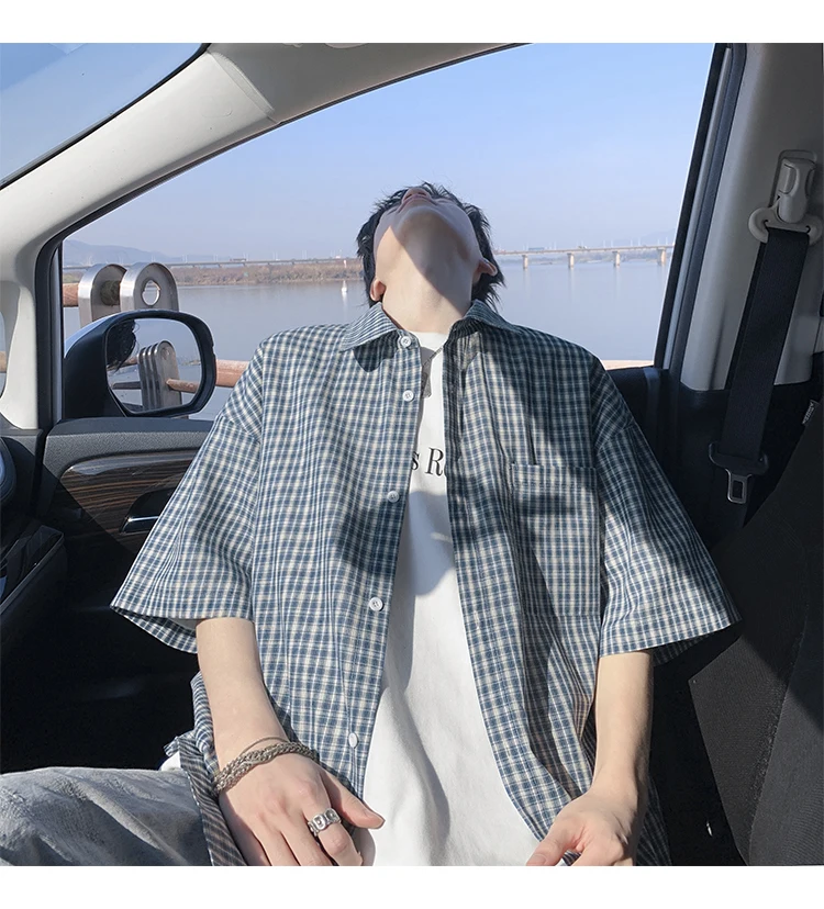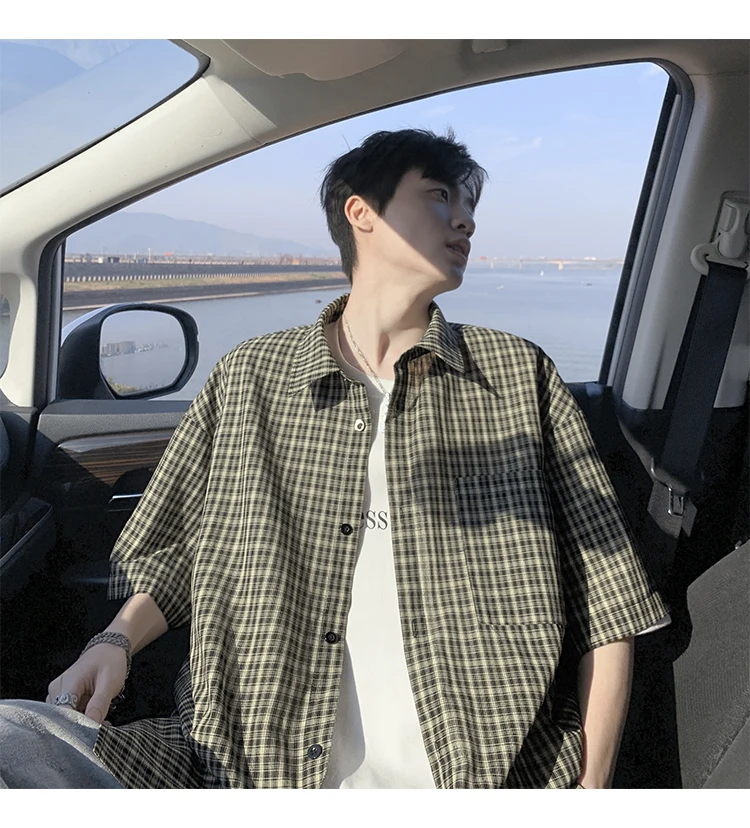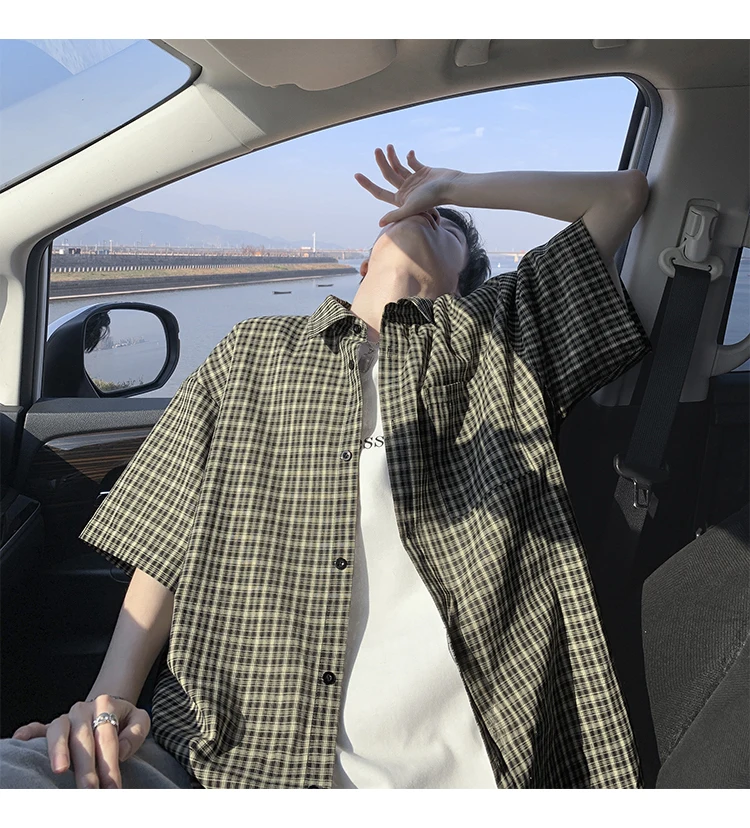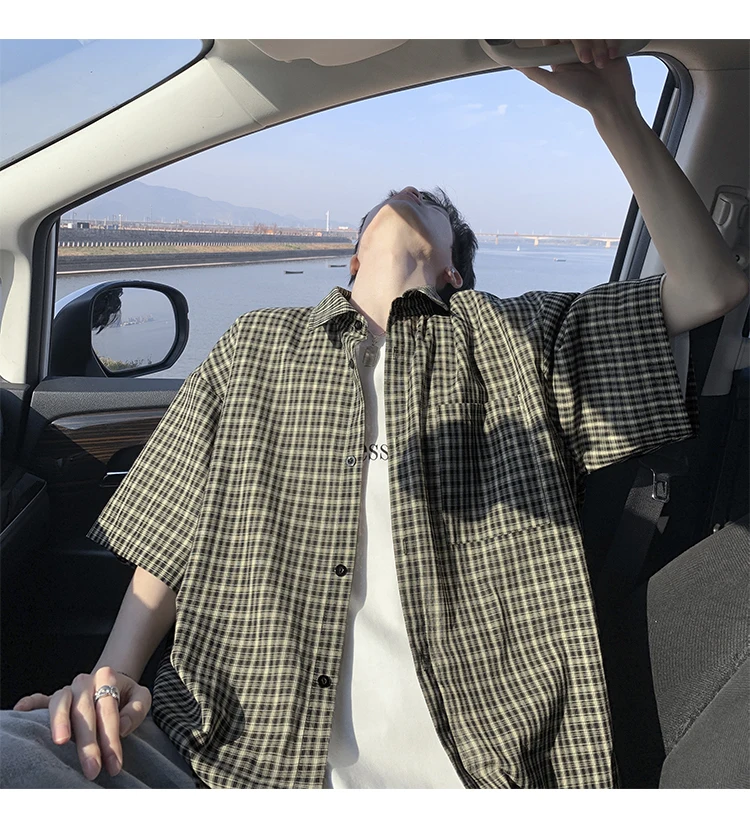 Summer Short Sleeved Shirt Men Retro Plaid Shirt Mens Streetwear Korean Loose Casual Shirt Man Fashion Shirts Large Size 4XL