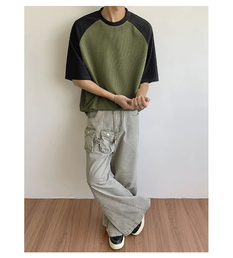 Summer Short Sleeved T-shirt Men Fashion White Casual T Shirt Men Streetwear Korean Pleated T Shirt Mens Top Large Size 4XL