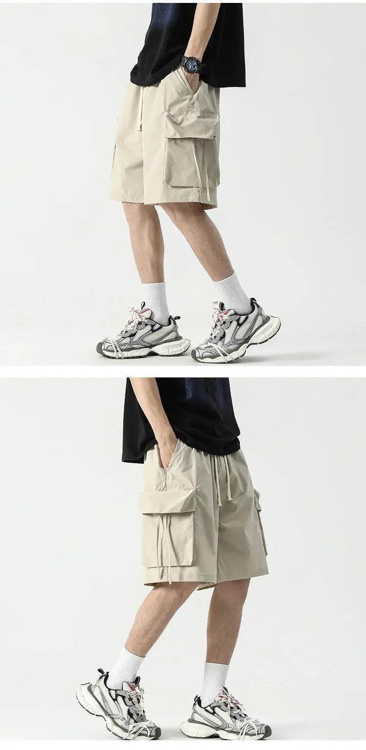 Summer Shorts Men Fashion Retro Pocket Shorts Mens Japanese Streetwear Hip-hop Loose Cargo Shorts Man Plus Size Shorts 4XL