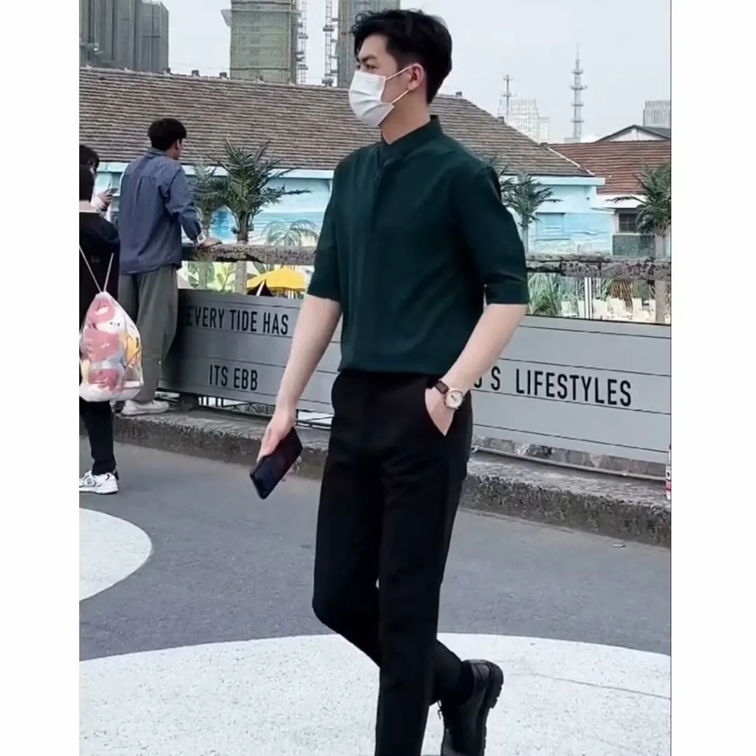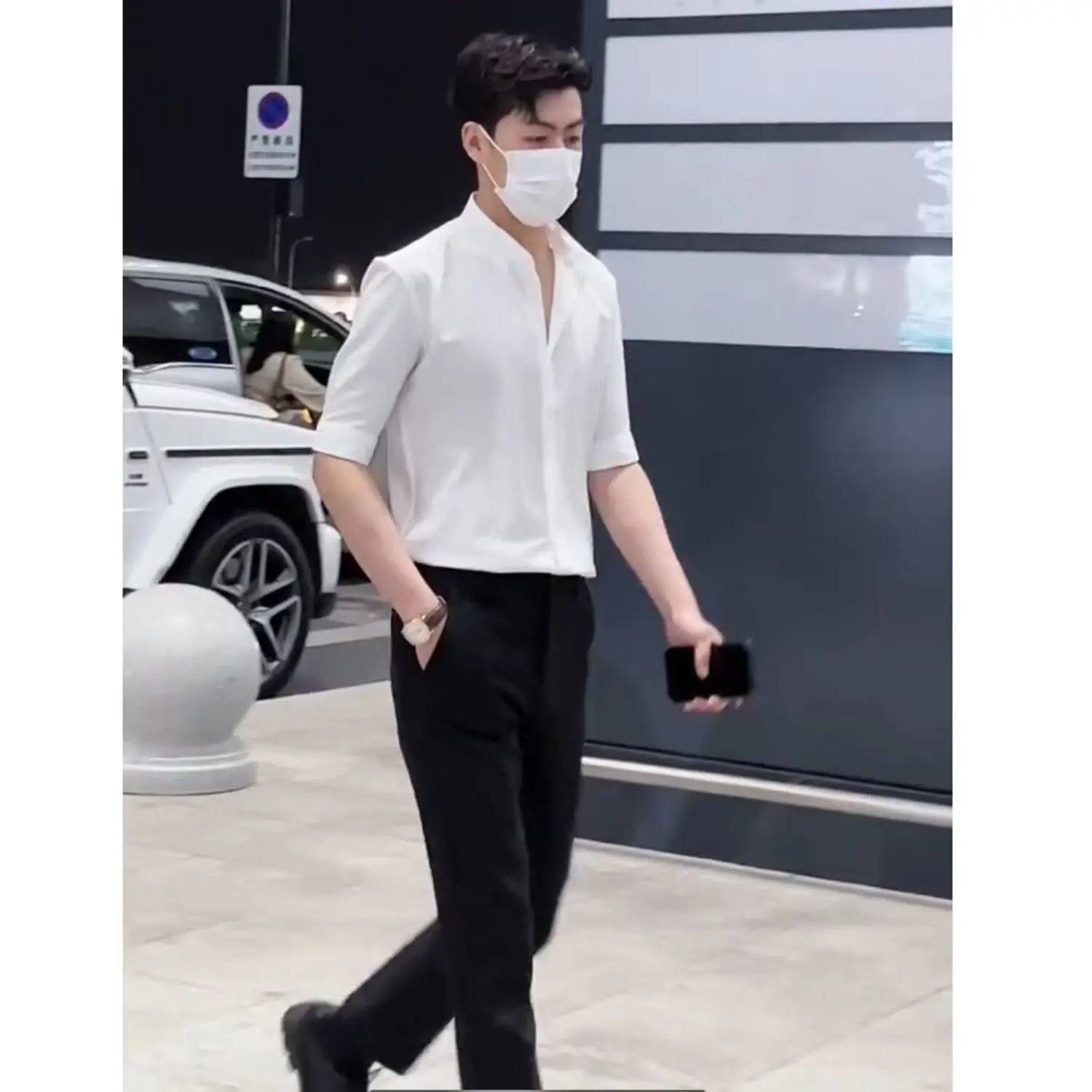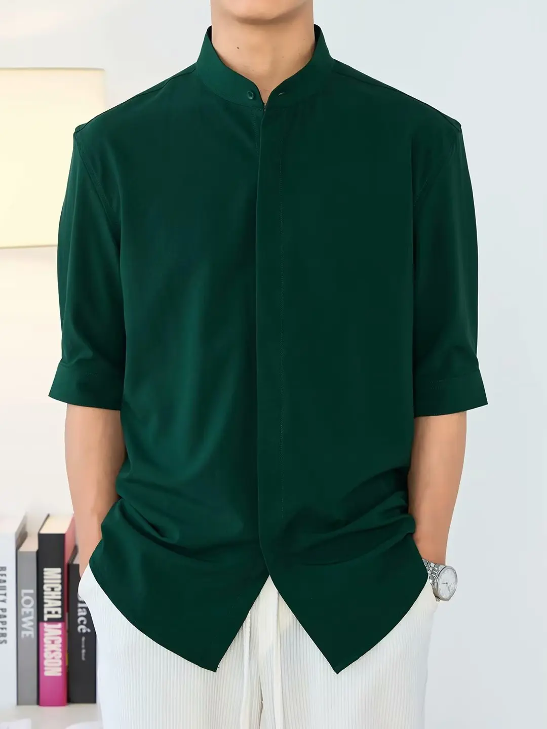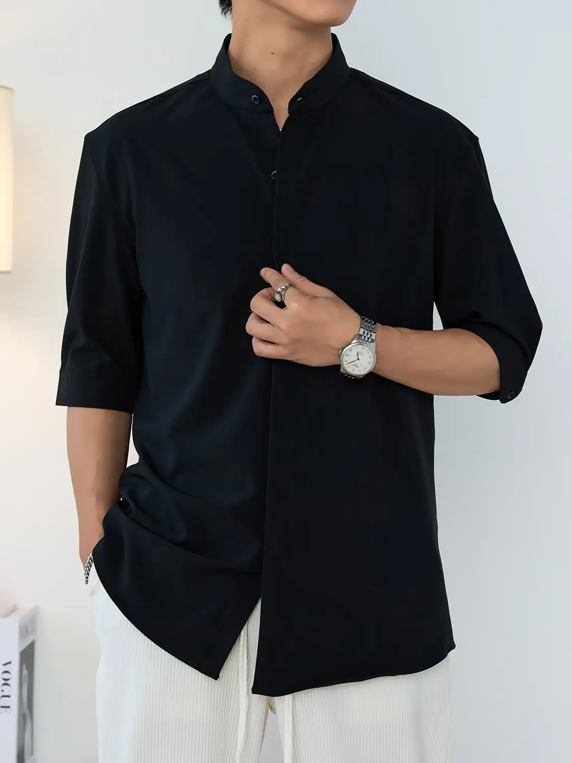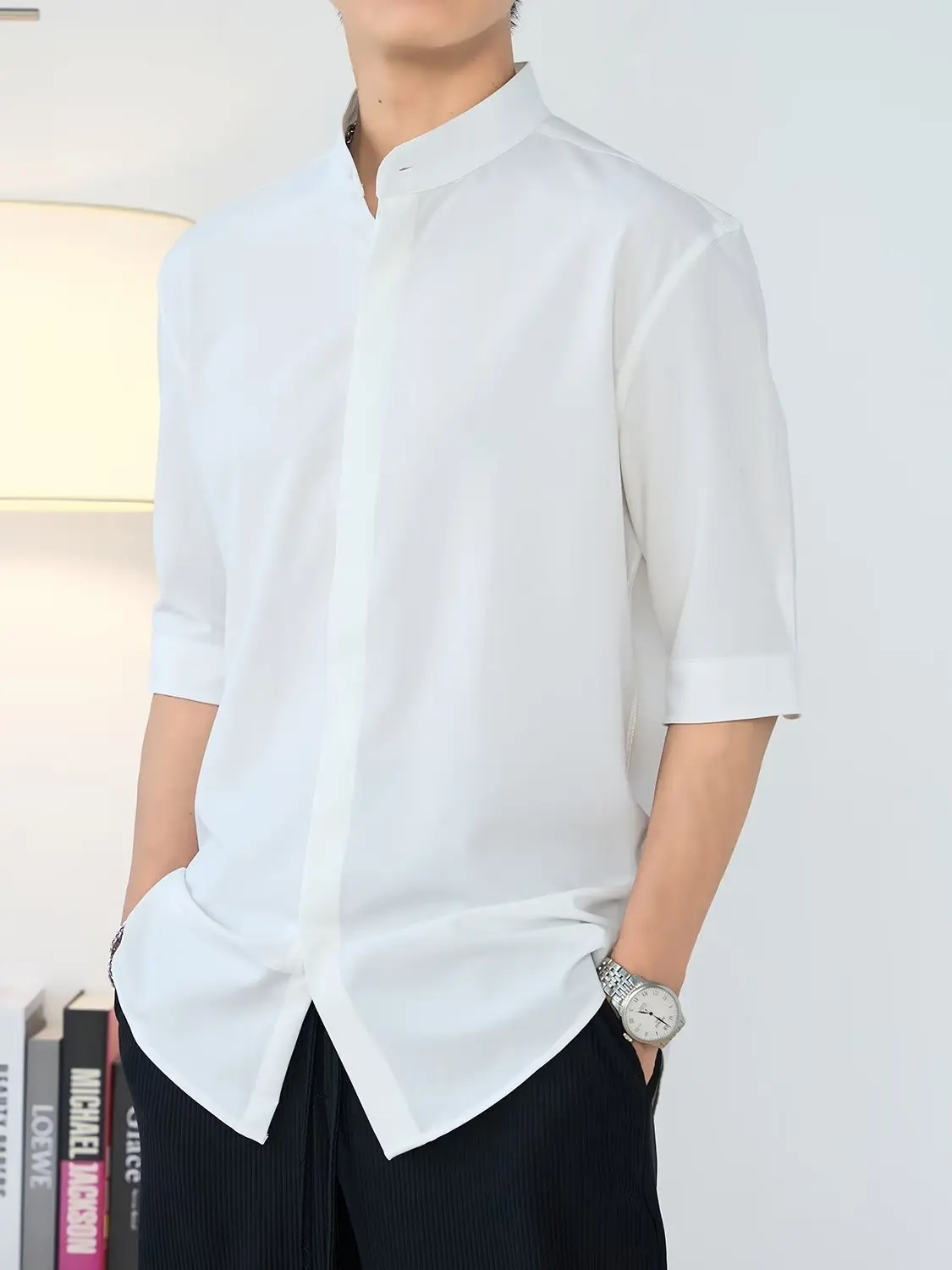 Summer Thin Stand-up Collar Ice Silk Short Sleeved Men Shirts New Chinese Style Business Casual Buttons Slim Half-sleeved Shirt