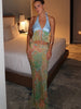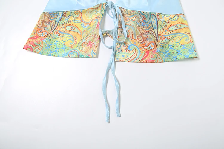 Summer Trend 2 Piece Set Women Satin Patchwork Backless Lace Up Camisole+Colorful Print Maxi Skirts Matching Clubwear