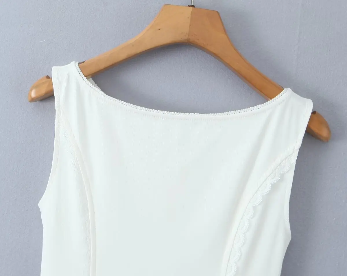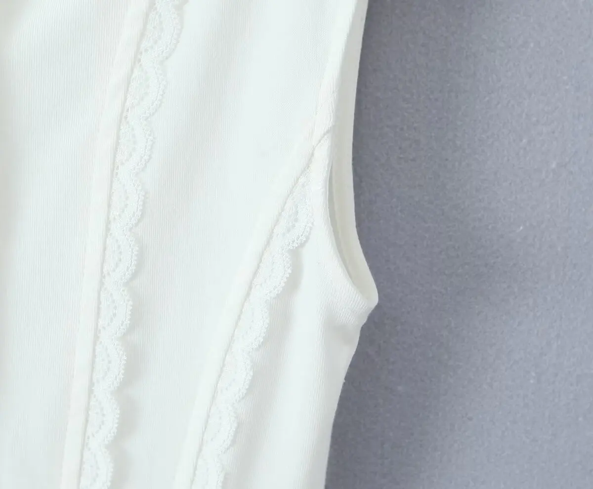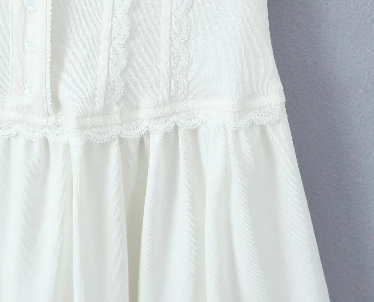 Summer Women Front Button O Neck Sleeveless Dress Lace Trim Sexy Low Waist A-line Mini