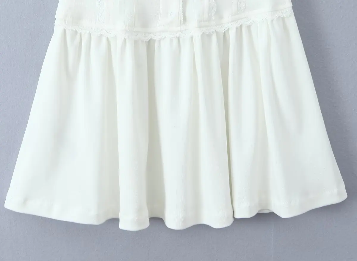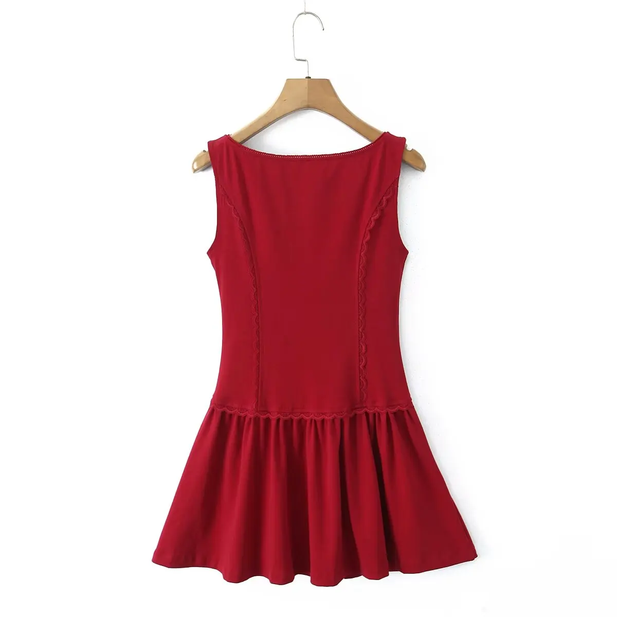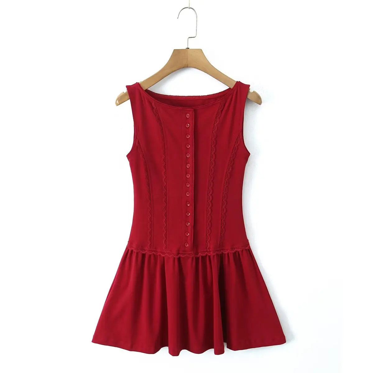 Summer Women Front Button O Neck Sleeveless Dress Lace Trim Sexy Low Waist A-line Mini Dresses White Red Sweet Robe