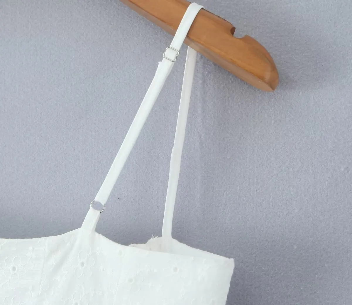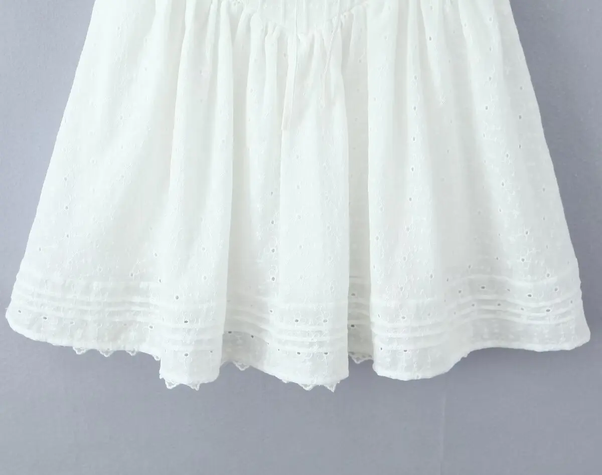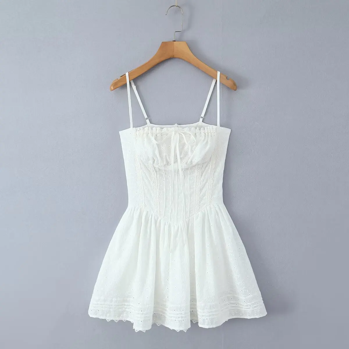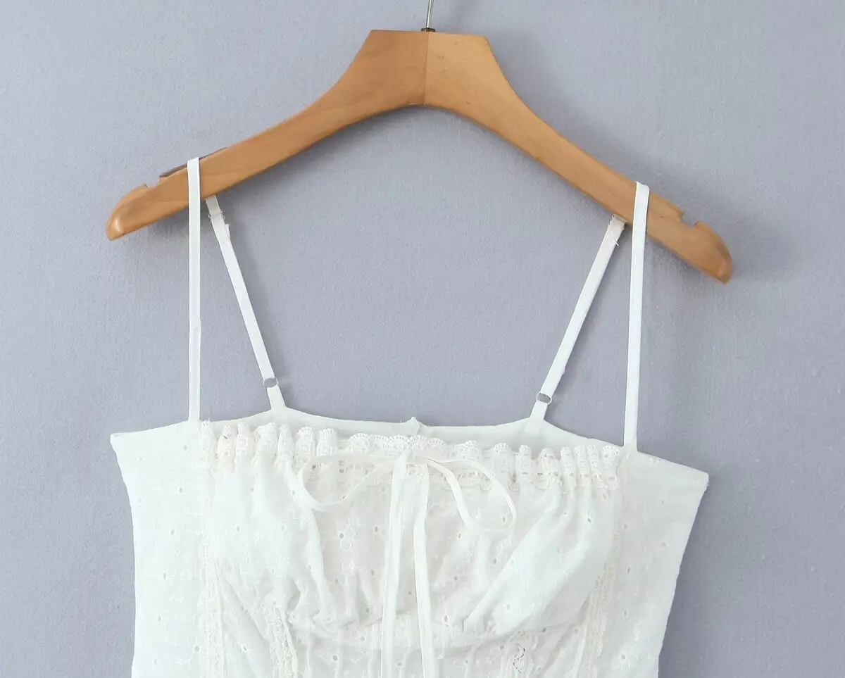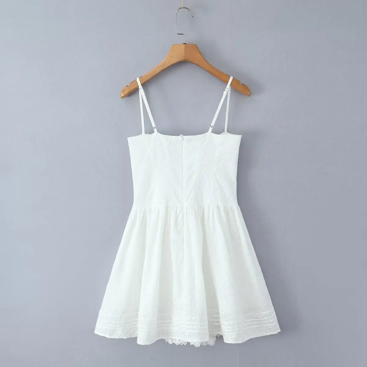 Summer Women Hollow Out Embroidery White Sling Mini Dresses