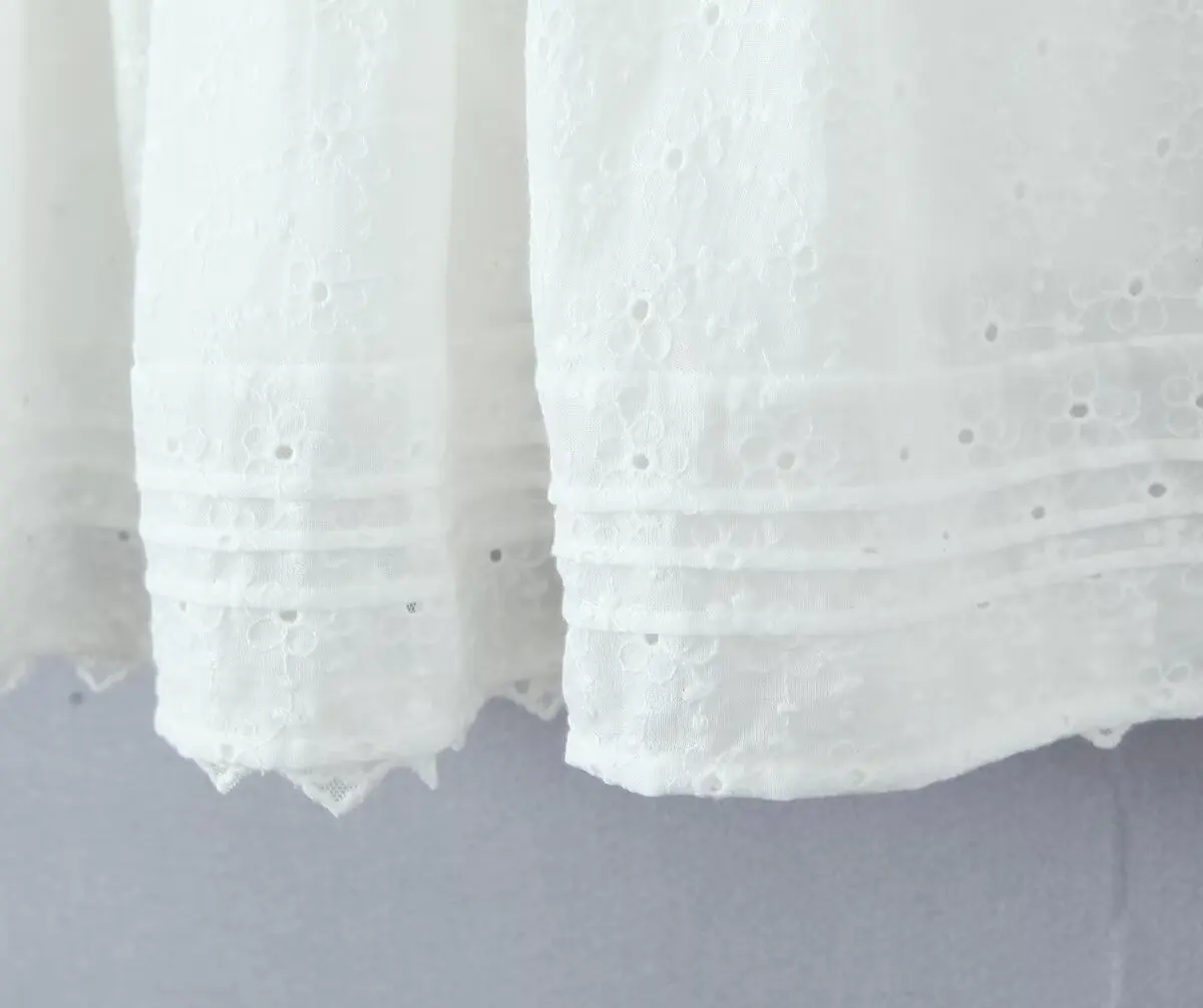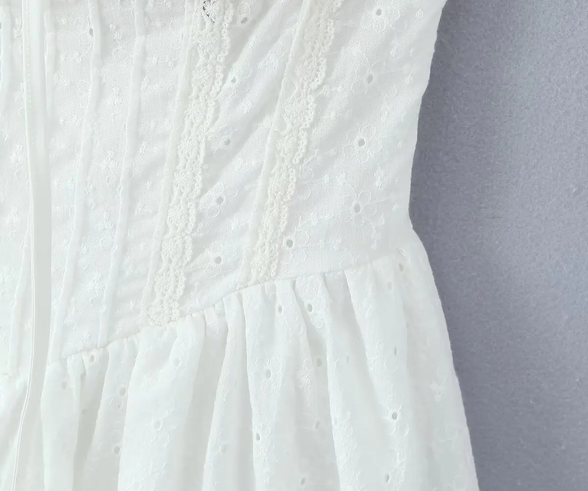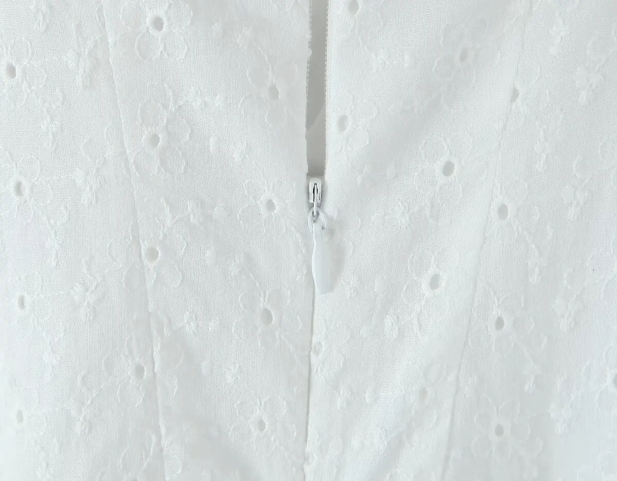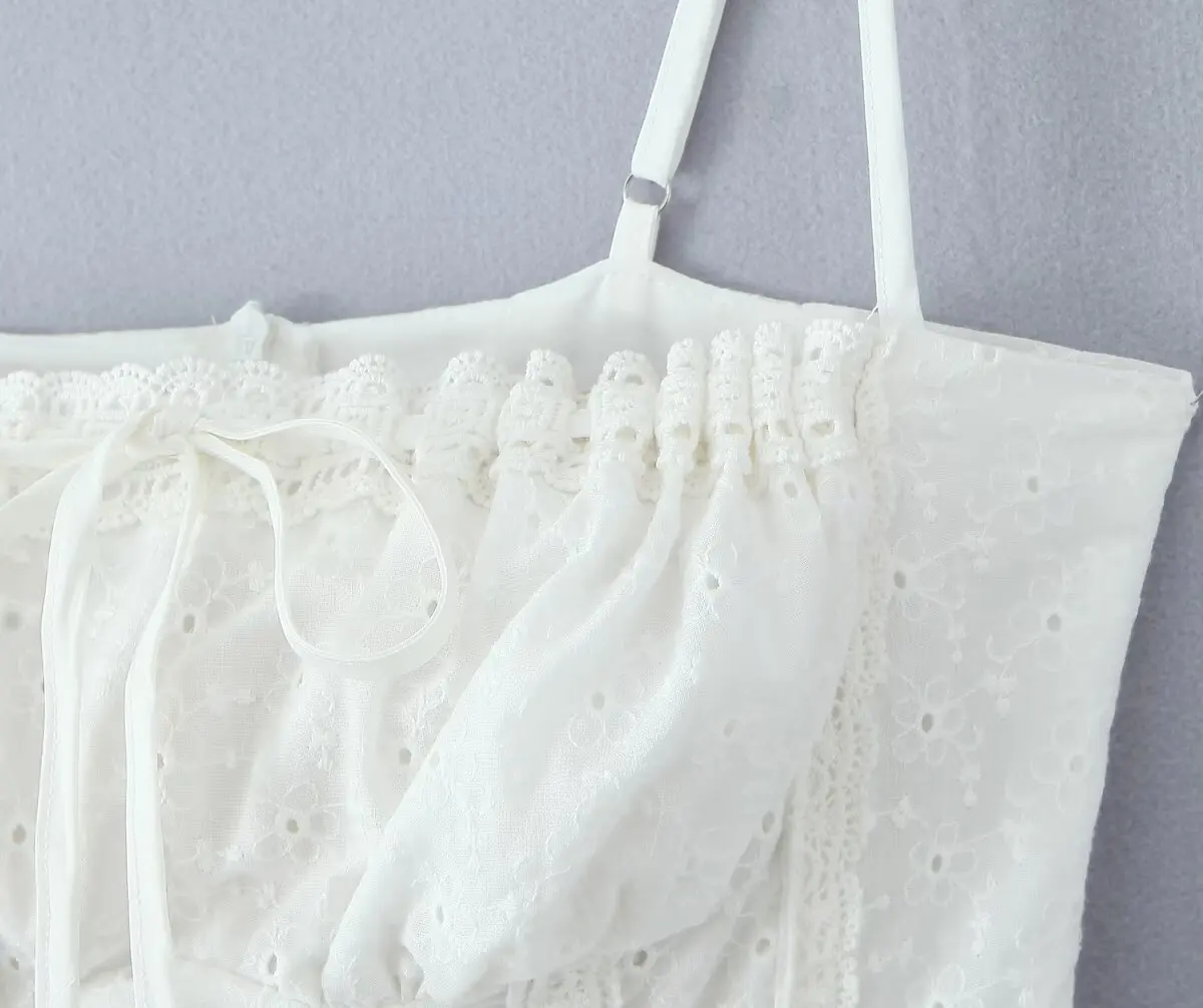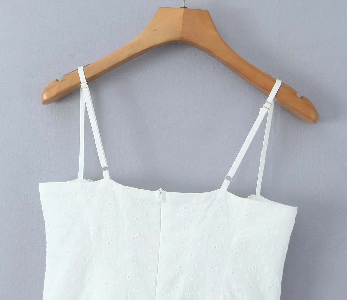 Summer Women Hollow Out Embroidery White Sling Mini Dresses