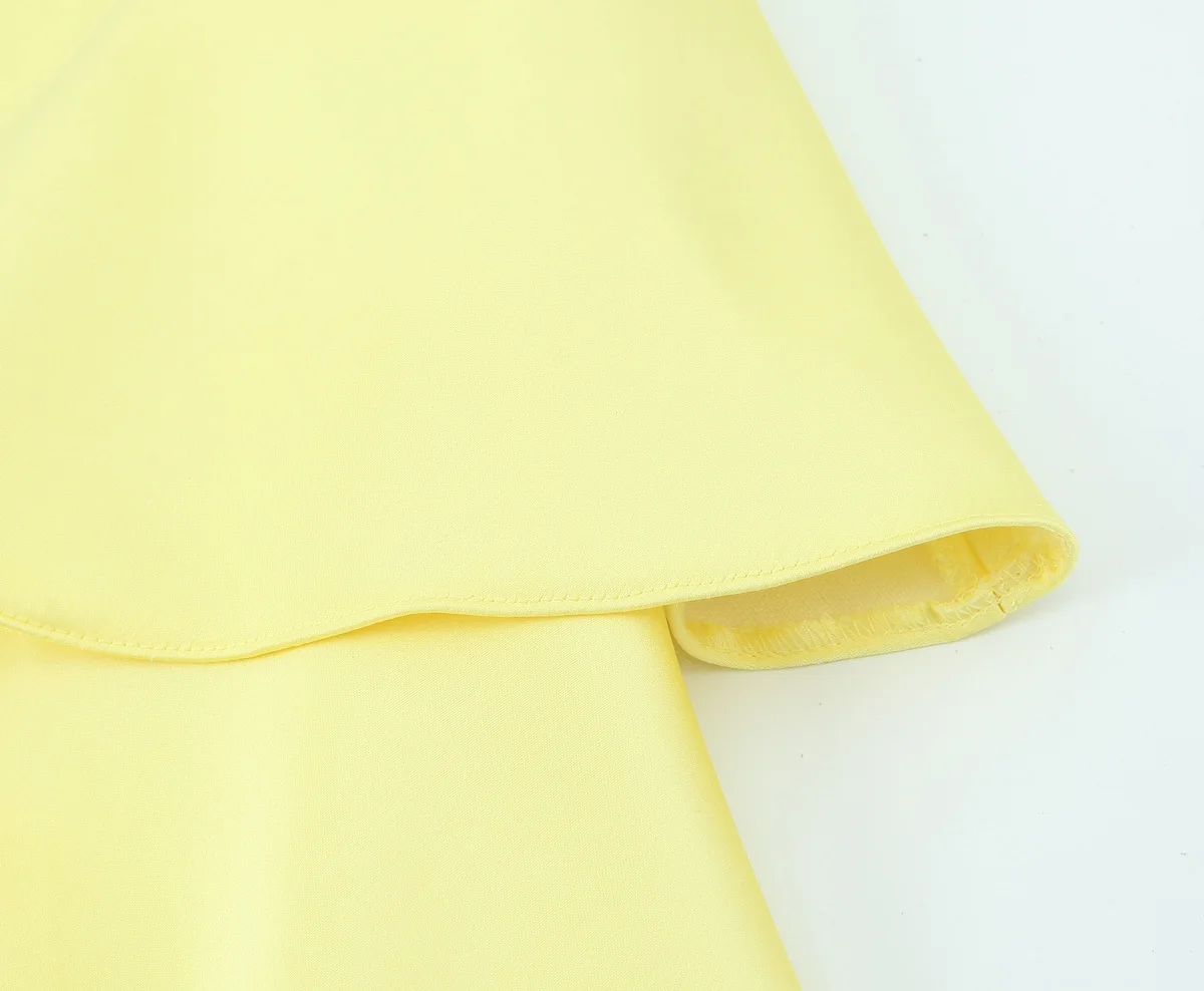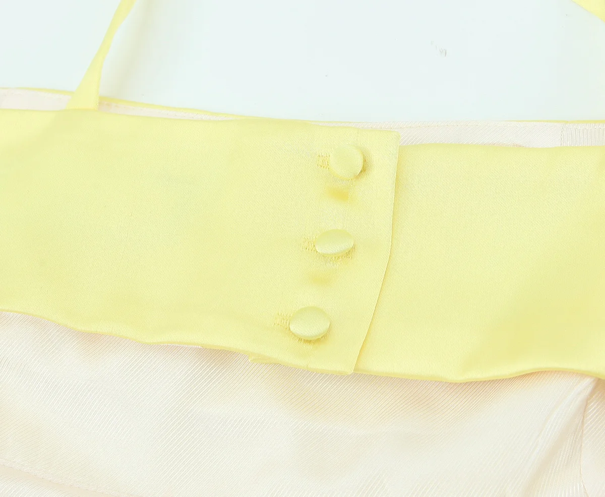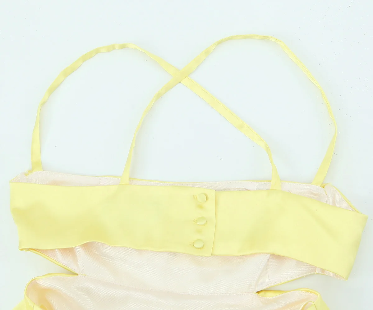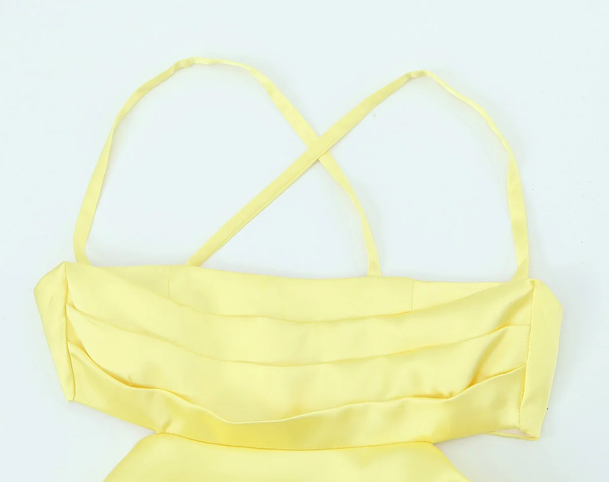 Summer Women Sexy Backless Thin Straps Yellow Satin Mini Dresses