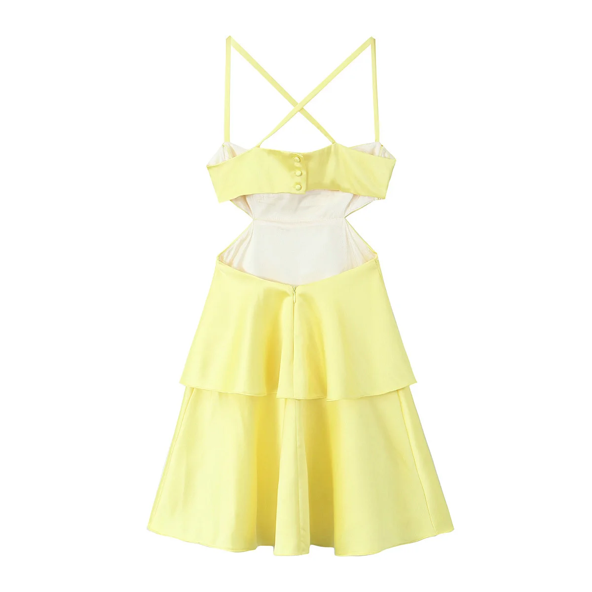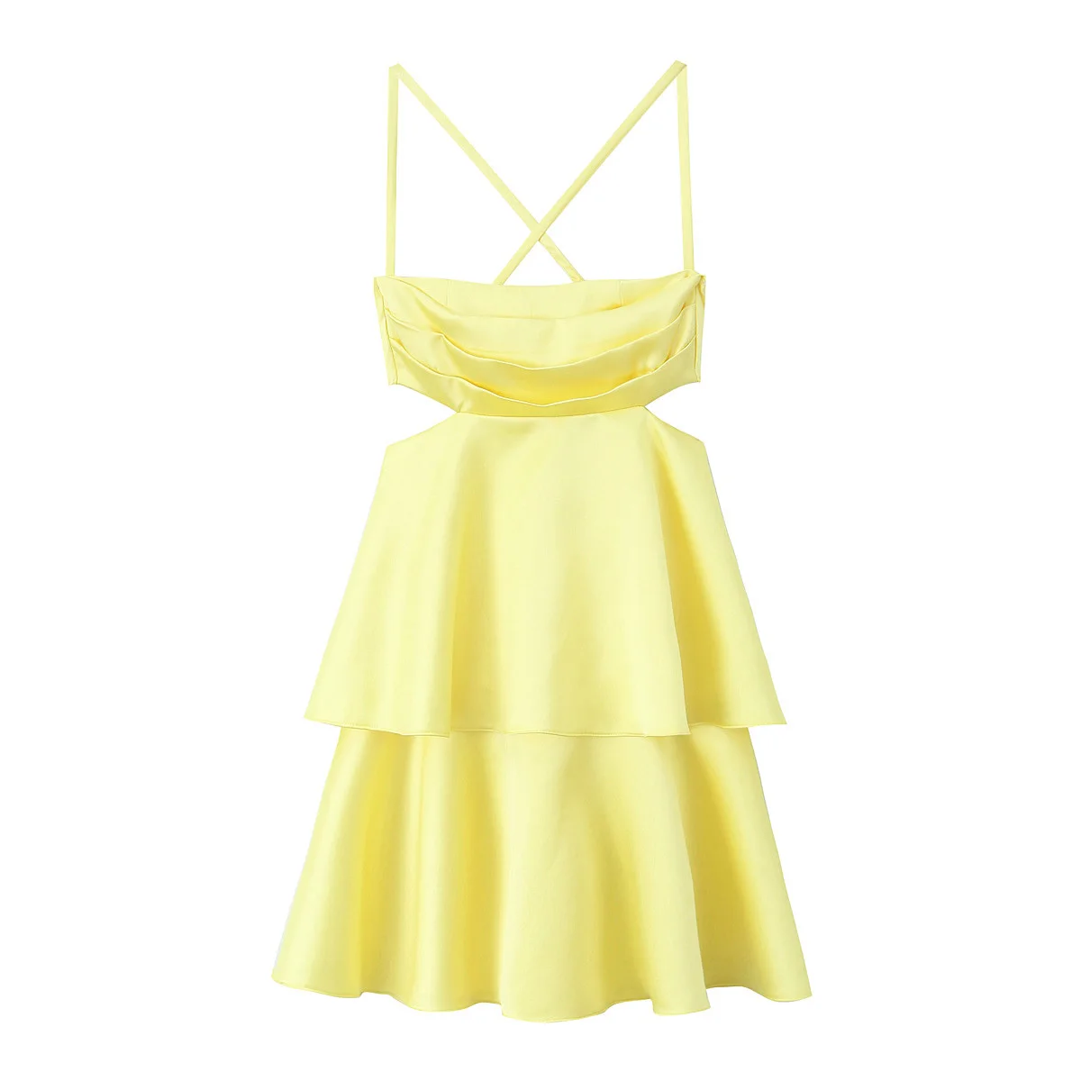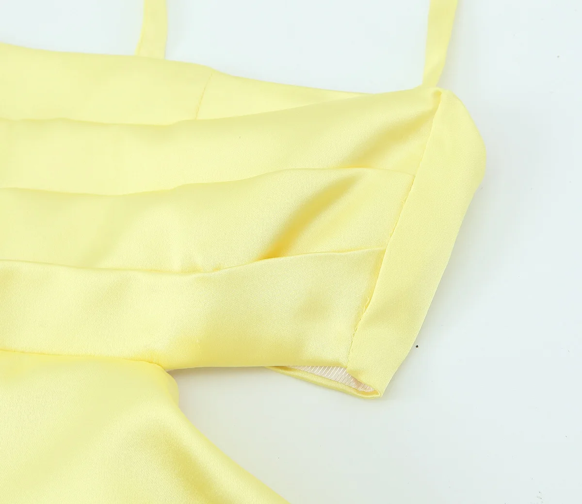 Summer Women Sexy Backless Thin Straps Yellow Satin Mini Dresses