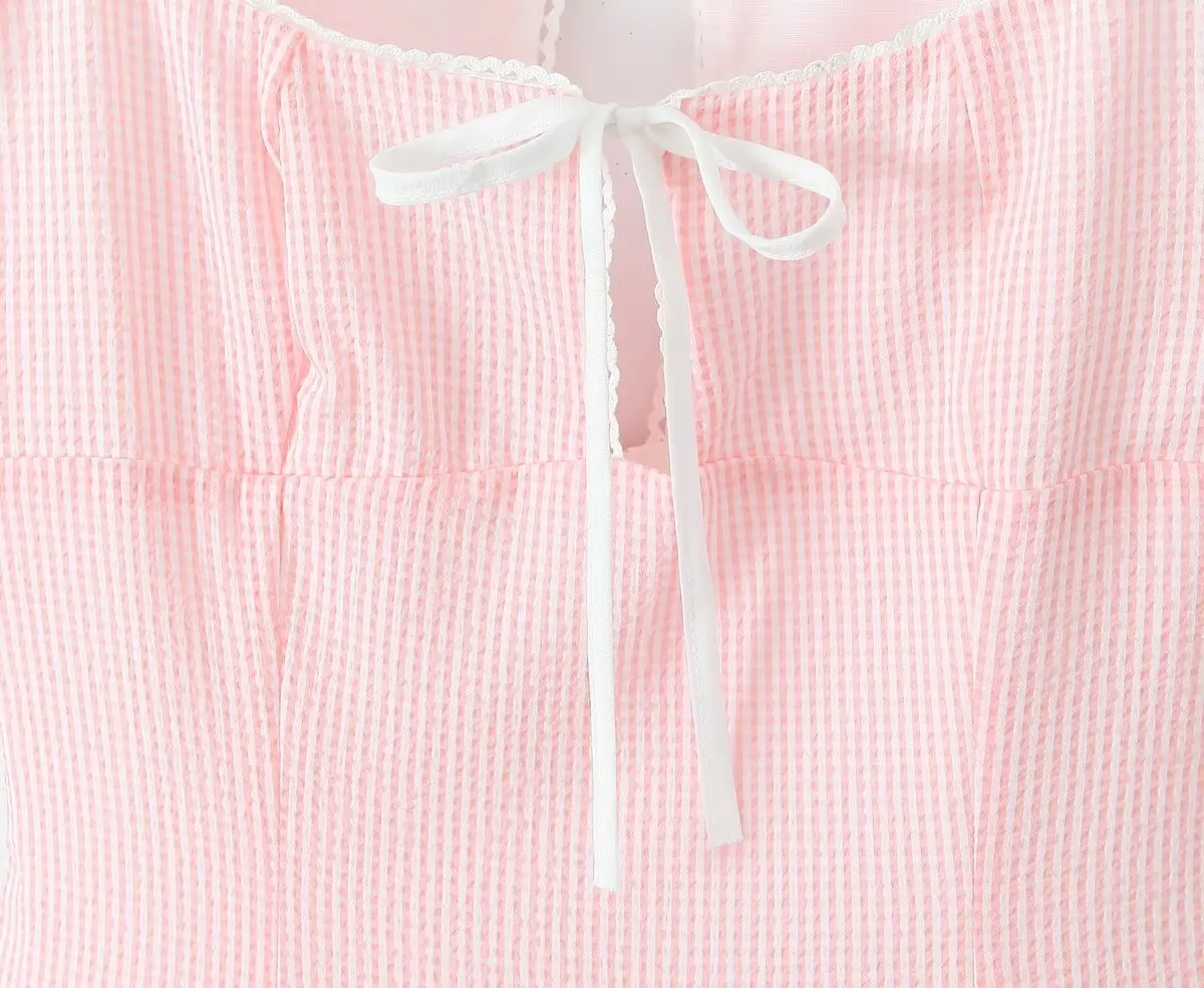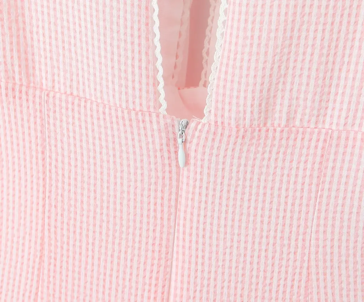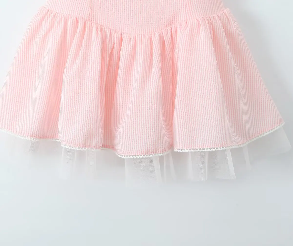 Summer Women White Mesh Patchwork Pink Striped Sling Dresses Sexy Thin Straps O Neck A-line Mini Dress Holiday Robe