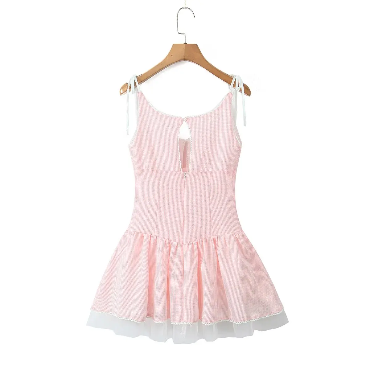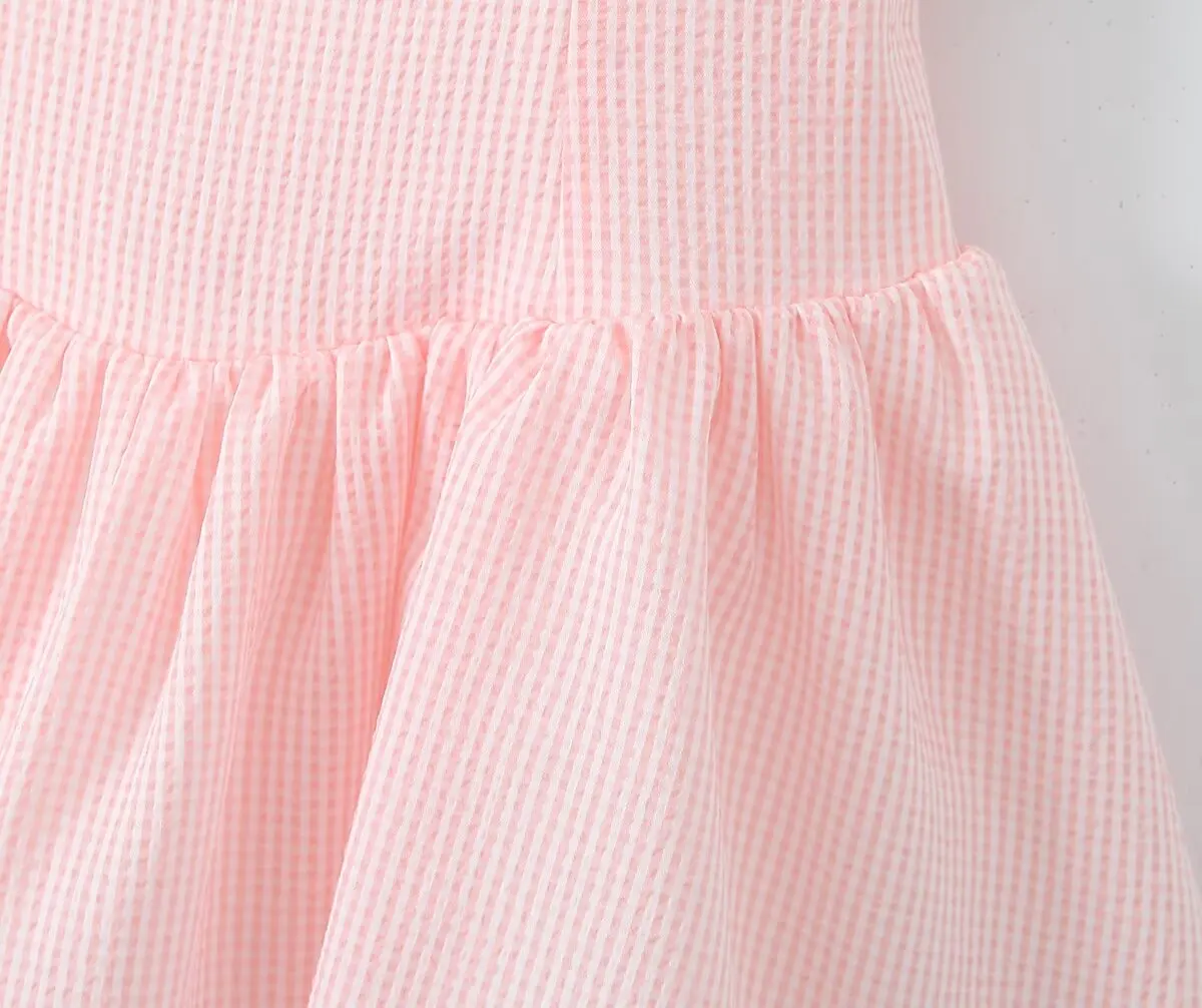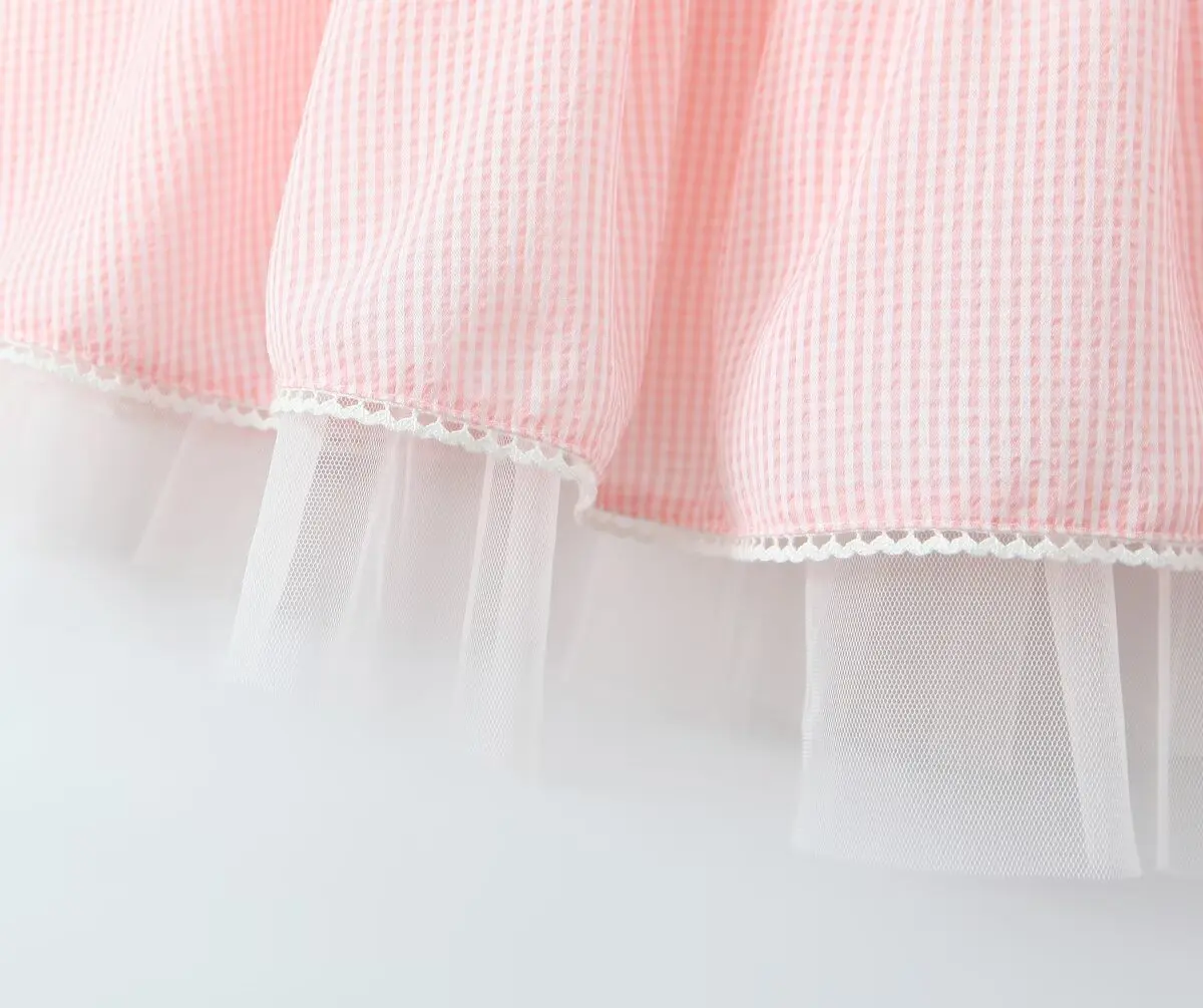 Summer Women White Mesh Patchwork Pink Striped Sling Dresses Sexy Thin Straps O Neck A-line Mini Dress Holiday Robe